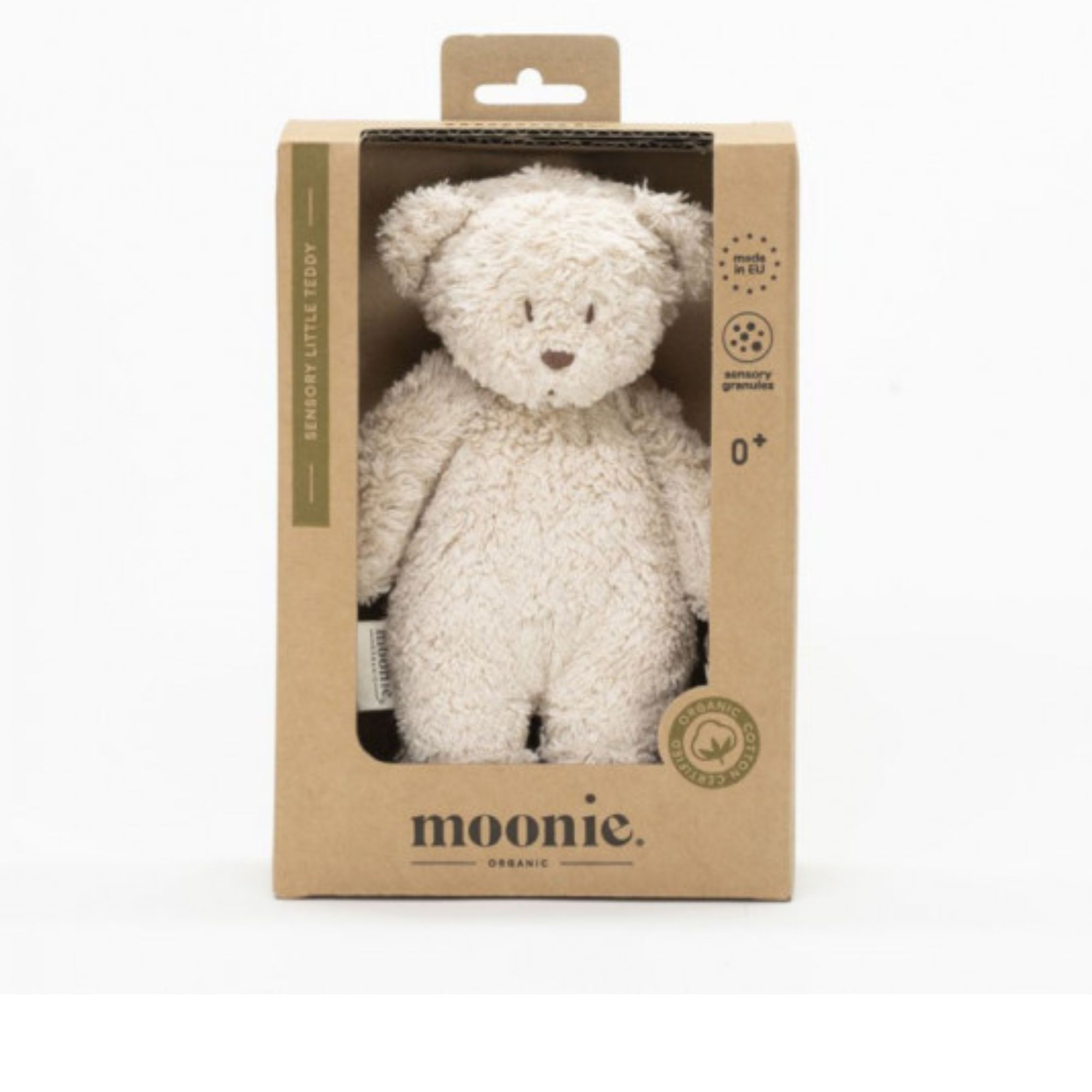 Découvrez le tout en délicatesse avec le petit ours densoriel sable Moonie accompagne les premiers instants de votre tout-petit avec tendresse et bienveillance. Entièrement confectionné en coton biologique certifié GOTS, cet adorable compagnon au coloris cappuccino offre une texture douce et légèrement granuleuse, pensée pour stimuler le sens du toucher et favoriser le développement de la motricité fine. Sa matière naturelle et son rembourrage sensoriel procurent une sensation réconfortante au creux des petites mains. L'enfant adore le manipuler, le presser ou le caresser , autant de gestes qui participent à son éveil sensoriel et à son apaisement. Compact et léger, l’ours Moonie se glisse facilement dans la poussette, le sac à langer ou la valise maternité, pour accompagner votre bébé partout. Une peluche pleine de douceur, d’authenticité et de sérénité, qui deviendra vite le doudou préféré de votre enfant.
