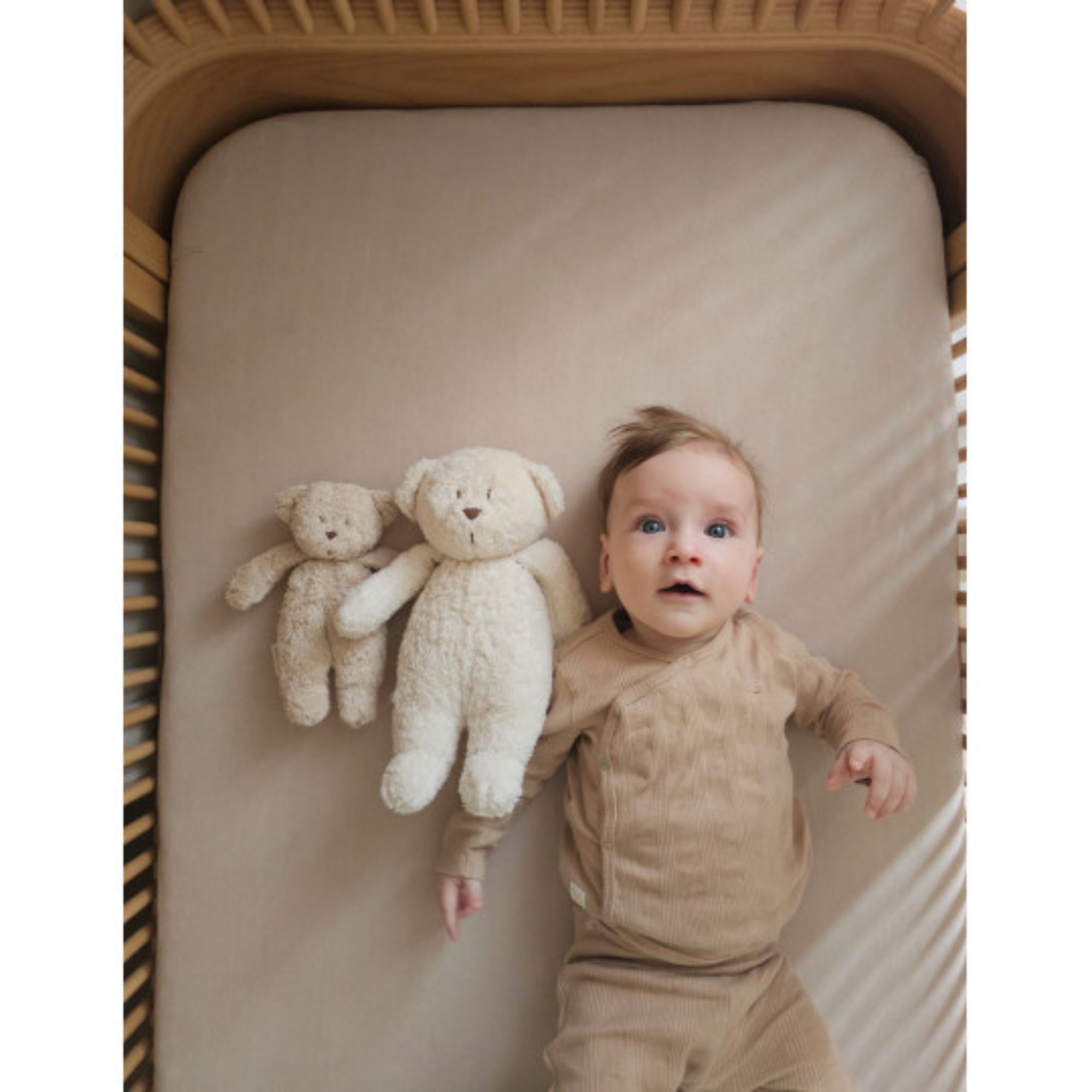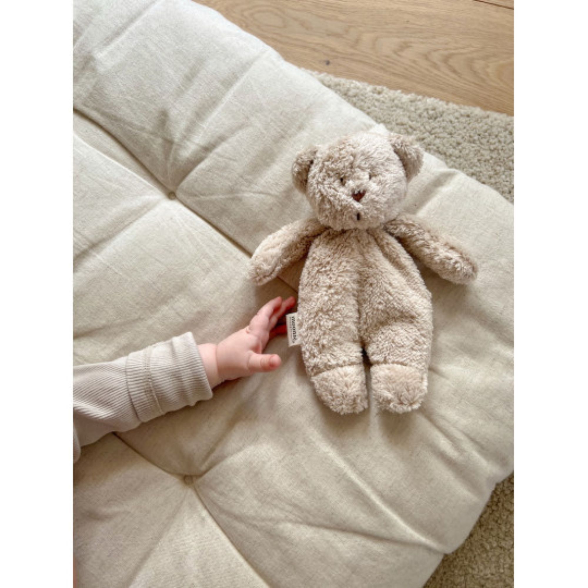 Ce petit ours est une peluche sensorielle naturelle pour éveiller la motricité et apaiser votre bébé pendant la sieste ou avant de s'endormir partout que ce soit à la maison, en ballade ou en vacance chez papi et mamie !