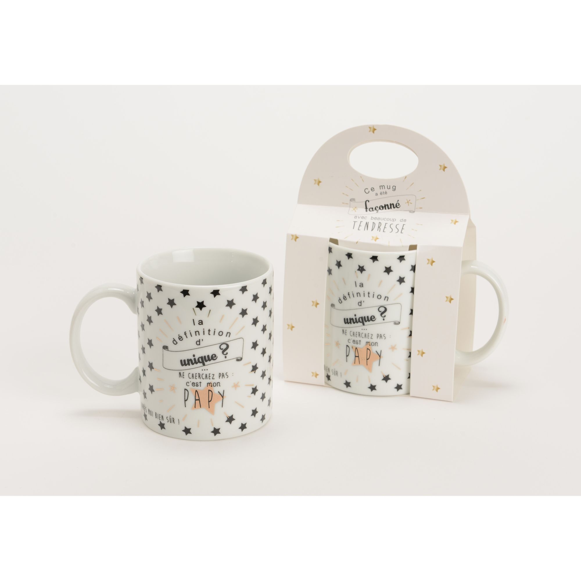 Découvrez le mug Papy unique de la marque Amadeus Les Petits. Ce joli mug est idéal pour prendre le thé ou le café. Son message "La définition de unique ? Ne cherchez pas c'est mon papy, après moi bien sûr" fera énormément plaisir à votre grand père.