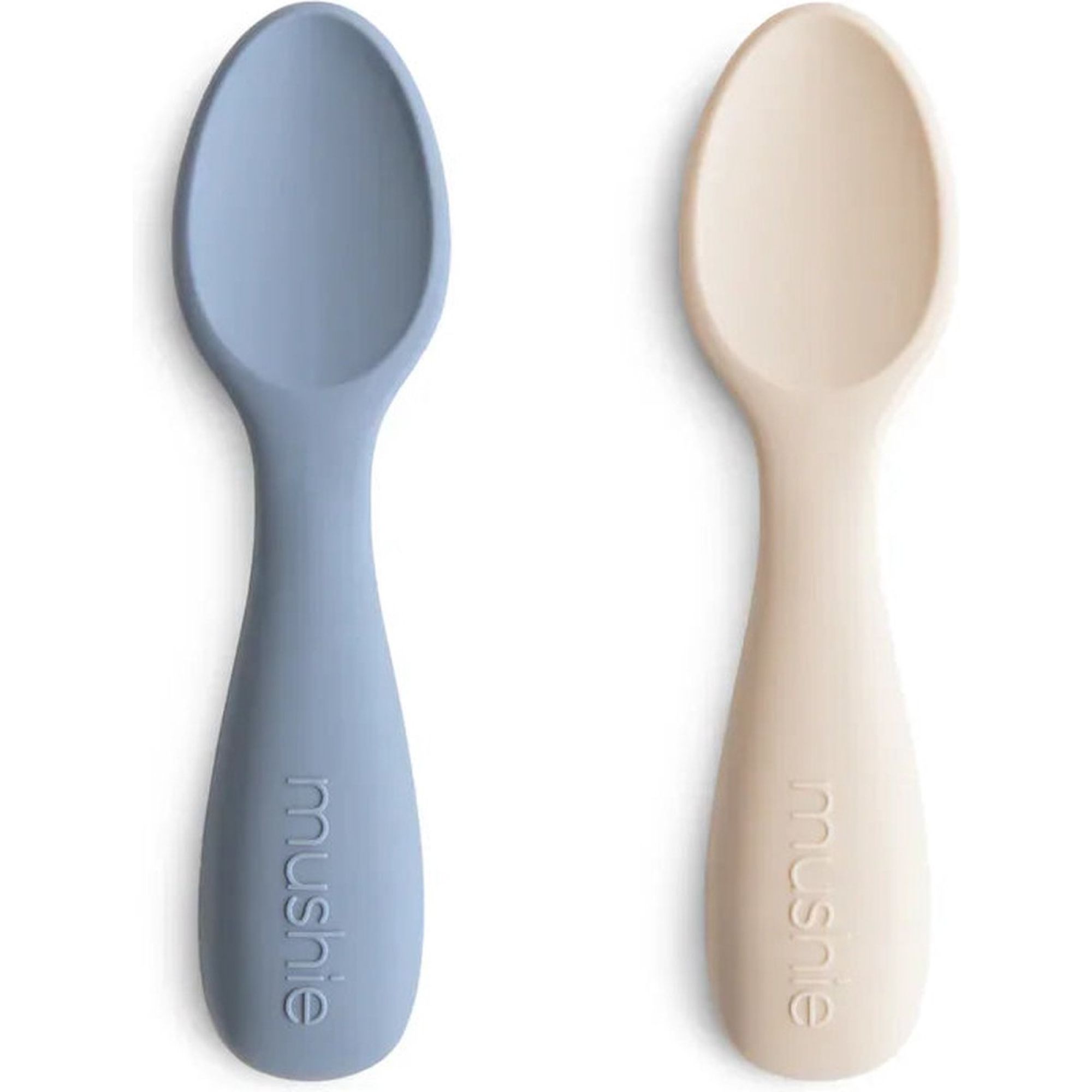 Optez pour le Lots de 2 Cuillères - Tradewinds / Shifting sand de chez mushie. Parfaitement adaptées aux petites mains, elles accompagnent bébé dans ses premiers repas avec style et praticité.