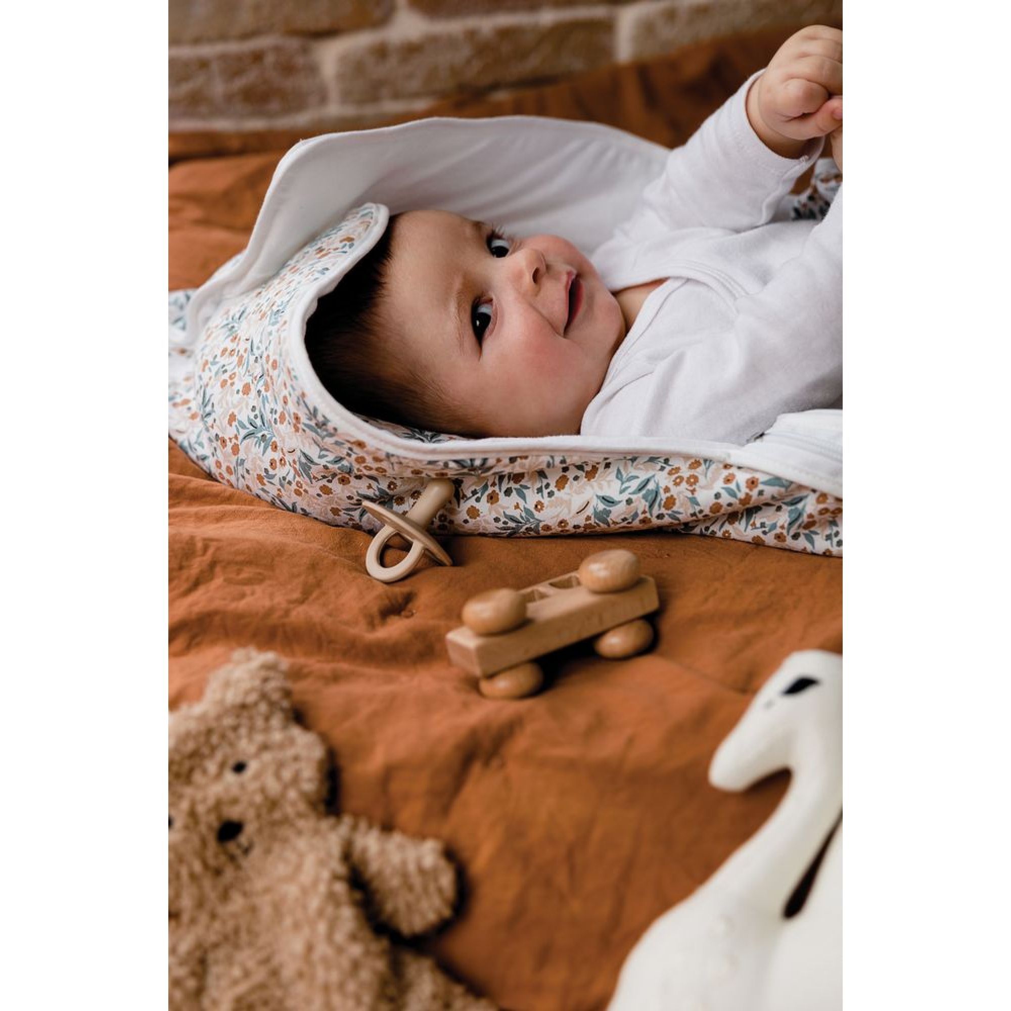 Une capuche est intégrée sur ce produit pur bien protéger la tête de votre enfant. Vous pourrez facilement ce nid d'ange avec une nacelle et un siège auto. Le tissu du nid d'ange est très doux pour le confort de votre bébé.