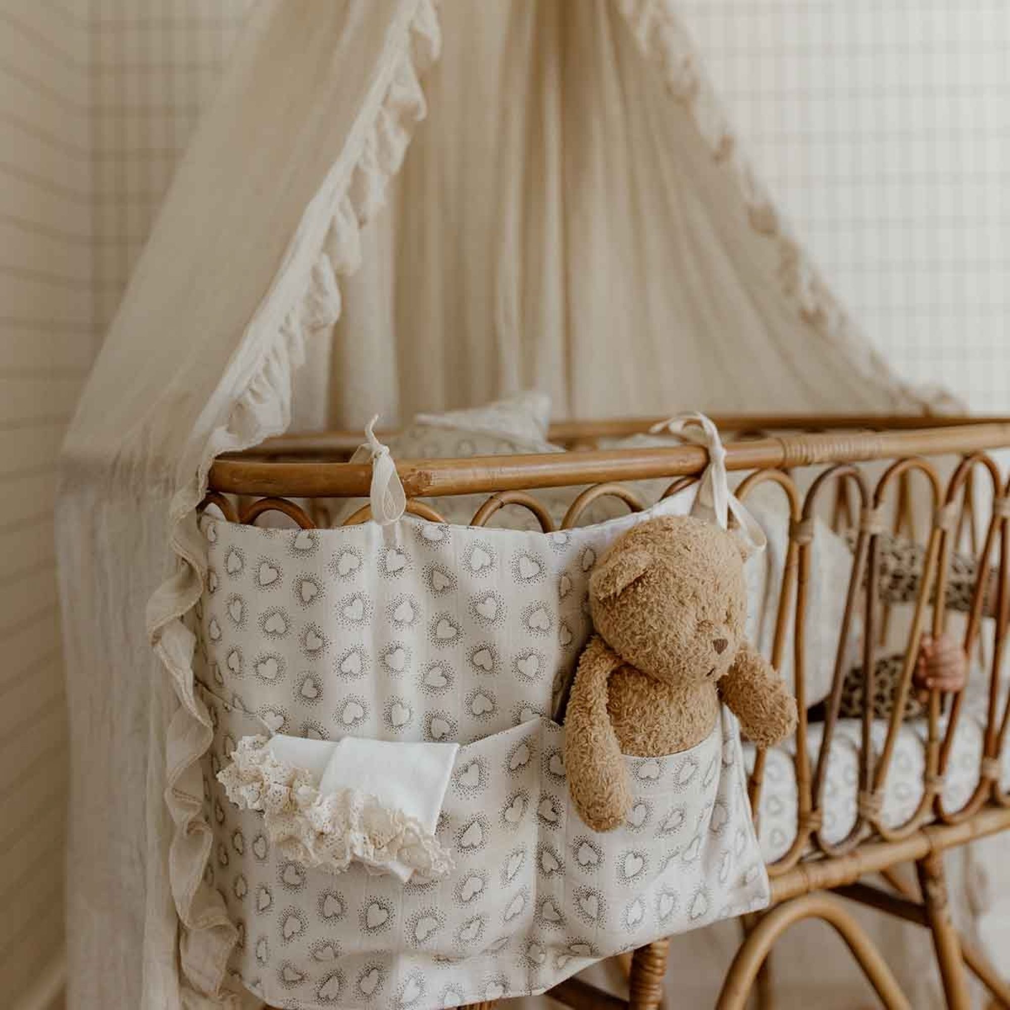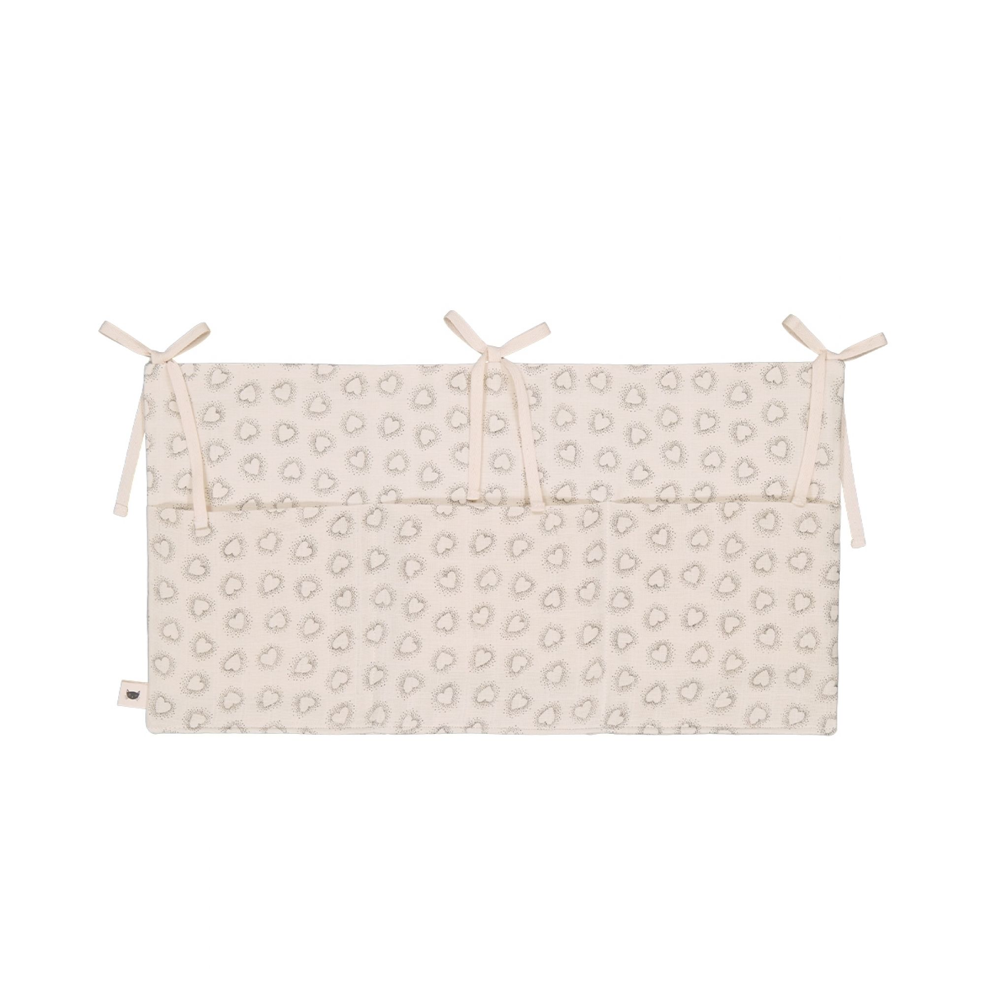 Découvrez pour la pochette de lit Dotted Heart Greige de la collection Mathilde de la marque Rose in April. Cette pochette sera idéale pour l'accrocher sur le lit de votre enfant et ranger tous vos essentiels ! Sucette, lange, hochet... Cette pochette vous sera très pratique.