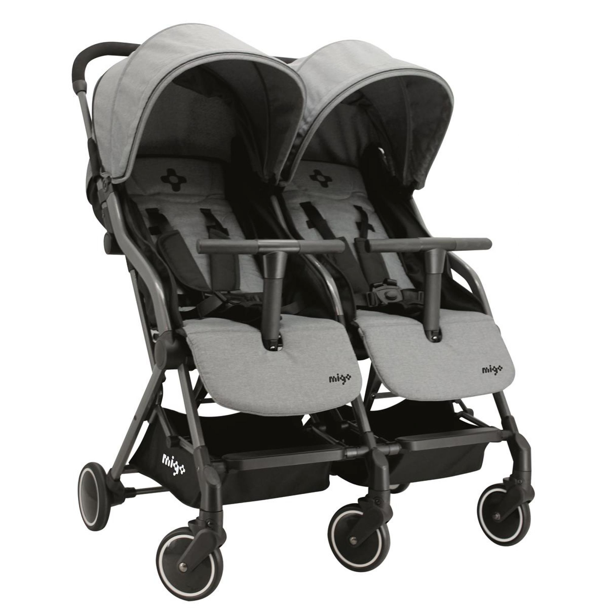 Optez pour cette poussette double Gaya de couleur grise de la marque Migo. Elle a été spécialement conçue pour les jumeaux/jumelles ou les enfants d'âges rapprochés. Cette poussette double est utilisable dès la naissance grâce à ses dossiers inclinables indépendamment. Les sièges larges et rembourrés offrent un maximum de confort lors des promenades.