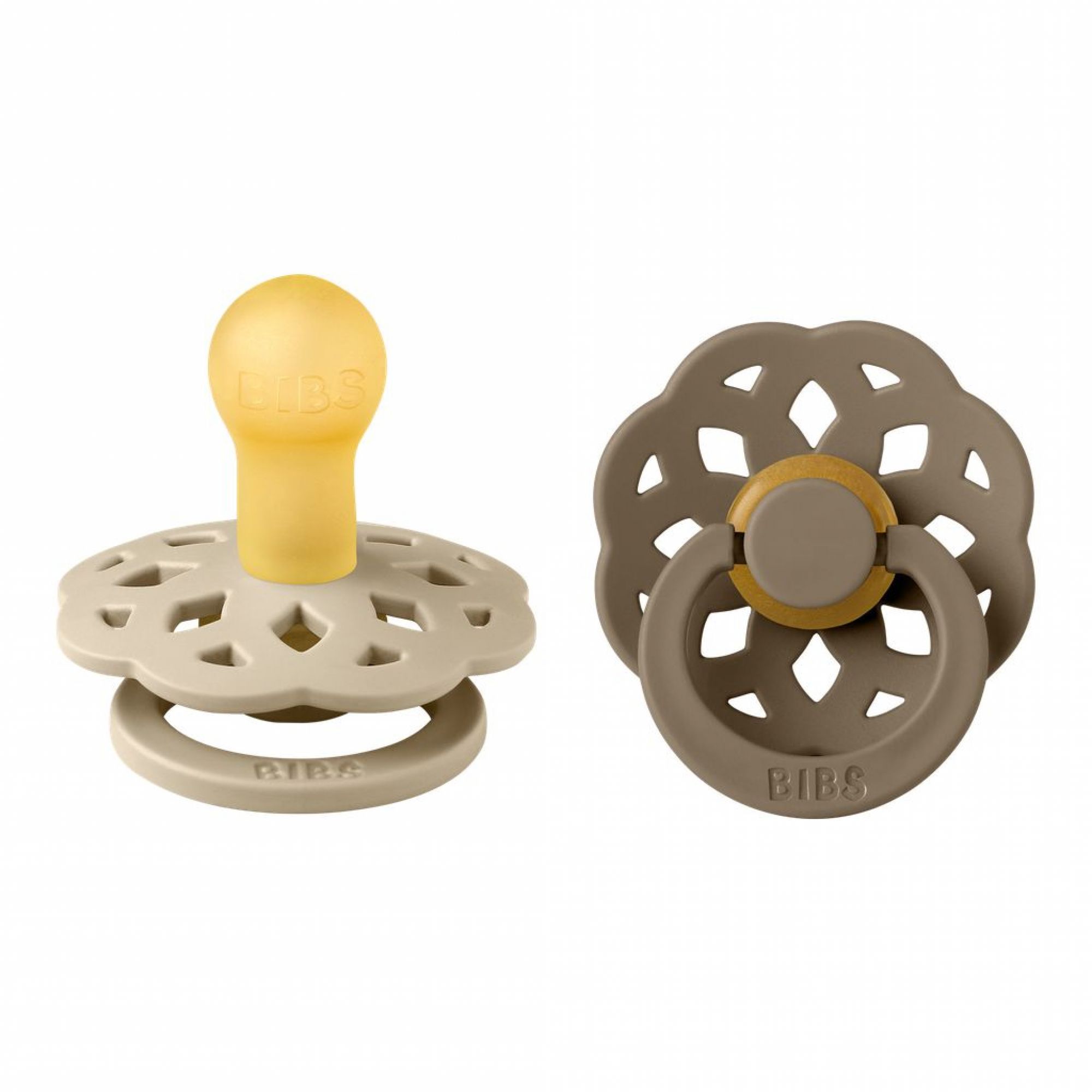 Bibs est une marque danoise fondée en 1978 qui propose des produits haut de gamme. Sucettes Bibs, attache-sucettes, bavoirs bébé, anneaux de dentitions, langes bébé et aussi biberons. Des produits originaux, sûrs et esthétiques, fabriqués de manière durable ! Les sucettes Bibs sont conçues en latex de caoutchouc naturel ou en silicone. Le caoutchouc naturel est un matériau doux, élastique et résilient. Le silicone quant à lui est hypoallergénique, inodore et neutre au goût. L'embout rond des tétines Bibs imite la forme et la taille du mamelon afin d'être acceptées plus facilement par votre enfant.