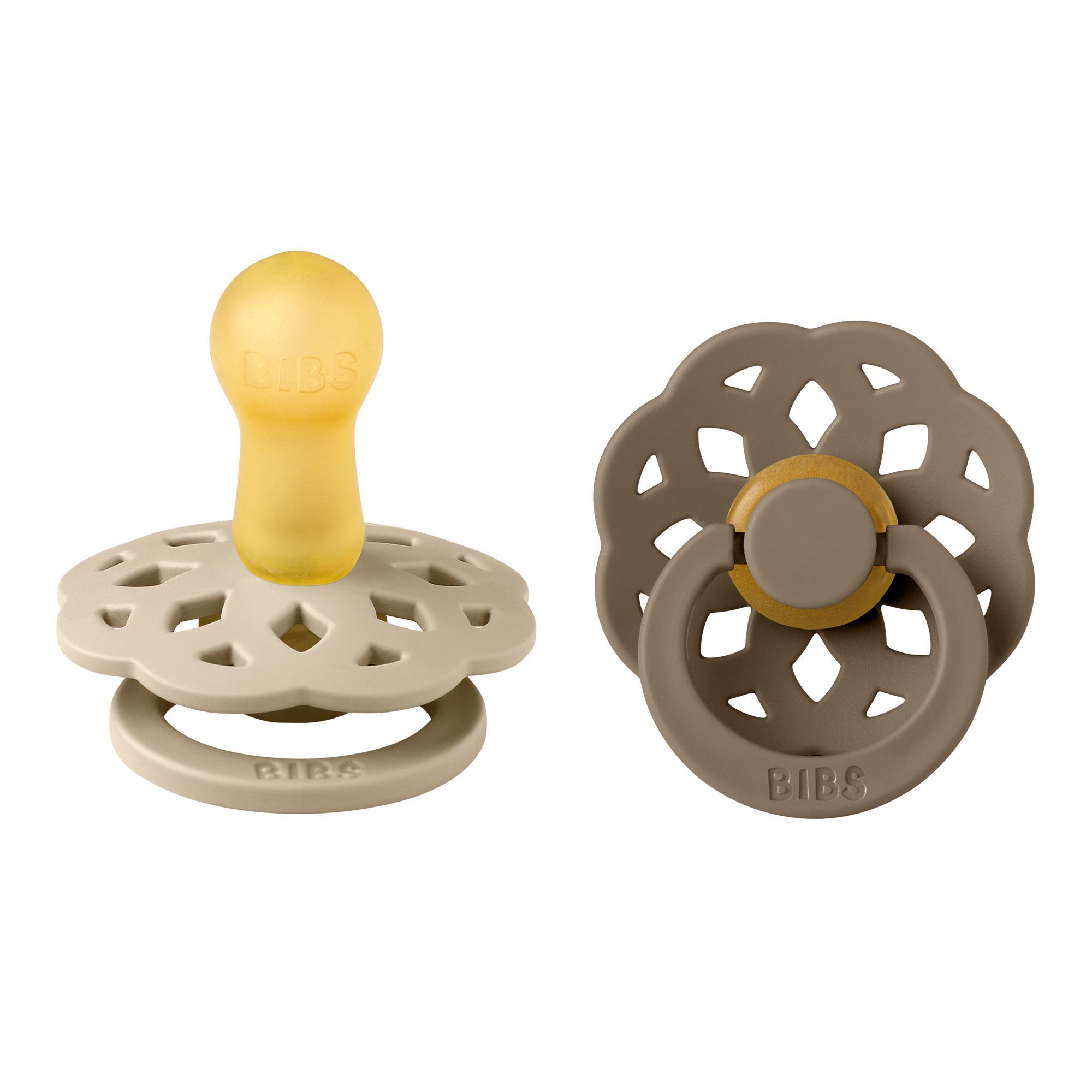 Choisissez ce joli lot de 2 sucettes en caoutchouc naturel de la collection Bohème de couleur vanilla et dark oak de la marque Bibs. Elles ont été spécialement conçues pour les bébés dès 6 mois. Ces sucettes Bibs au style bohème moderne possèdent une tétine ronde qui rappelle la forme et la taille du sein maternel. Cela incitera votre enfant à enrouler sa langue autour de la tétine et à téter de la même façon qu'il le ferait au sein. Ces sucettes Bibs sont compatibles avec les attaches sucettes de la même marque pour que votre bébé ne perde pas son objet préféré !