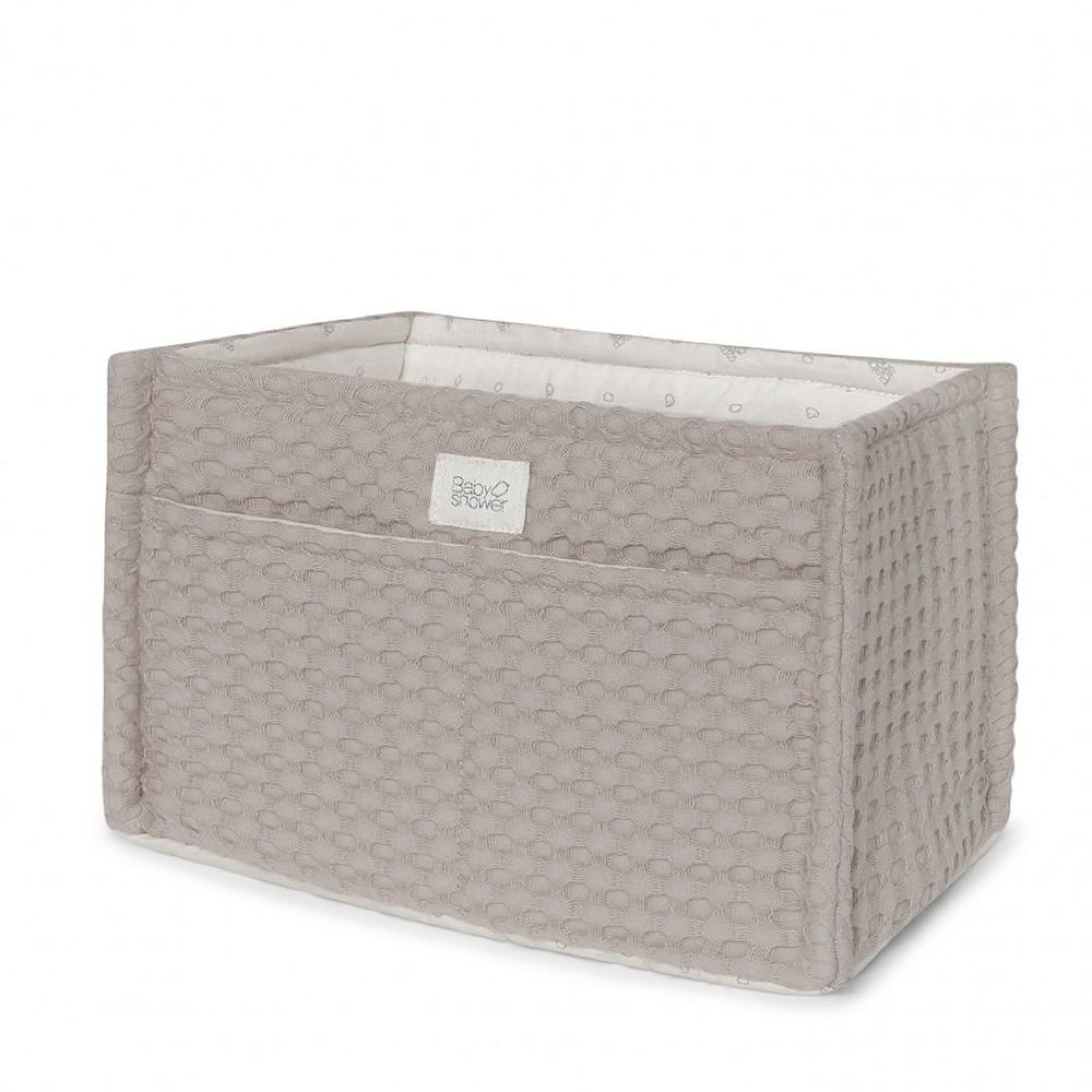 Choisissez le superbe panier de rangement Gaufre latte, parfait pour ranger les couches, , les petits jouets ou d'autres accessoires pour votre bébé. Grand panier de rangement garde-couches avec intérieur induit. Gardez tout à portée de main pendant le change de bébé. Ce panier pratique se pose facilement sur la table à langer et permet de ranger couches, lingettes et produits d’hygiène. Il dispose aussi d’une poche supplémentaire pour garder à portée les petits essentiels comme la crème pour le change, une brosse ou un thermomètre. Organisation et style réunis ! Pensez à compléter votre achat avec les magnifiques produits de la marque Babyshower.