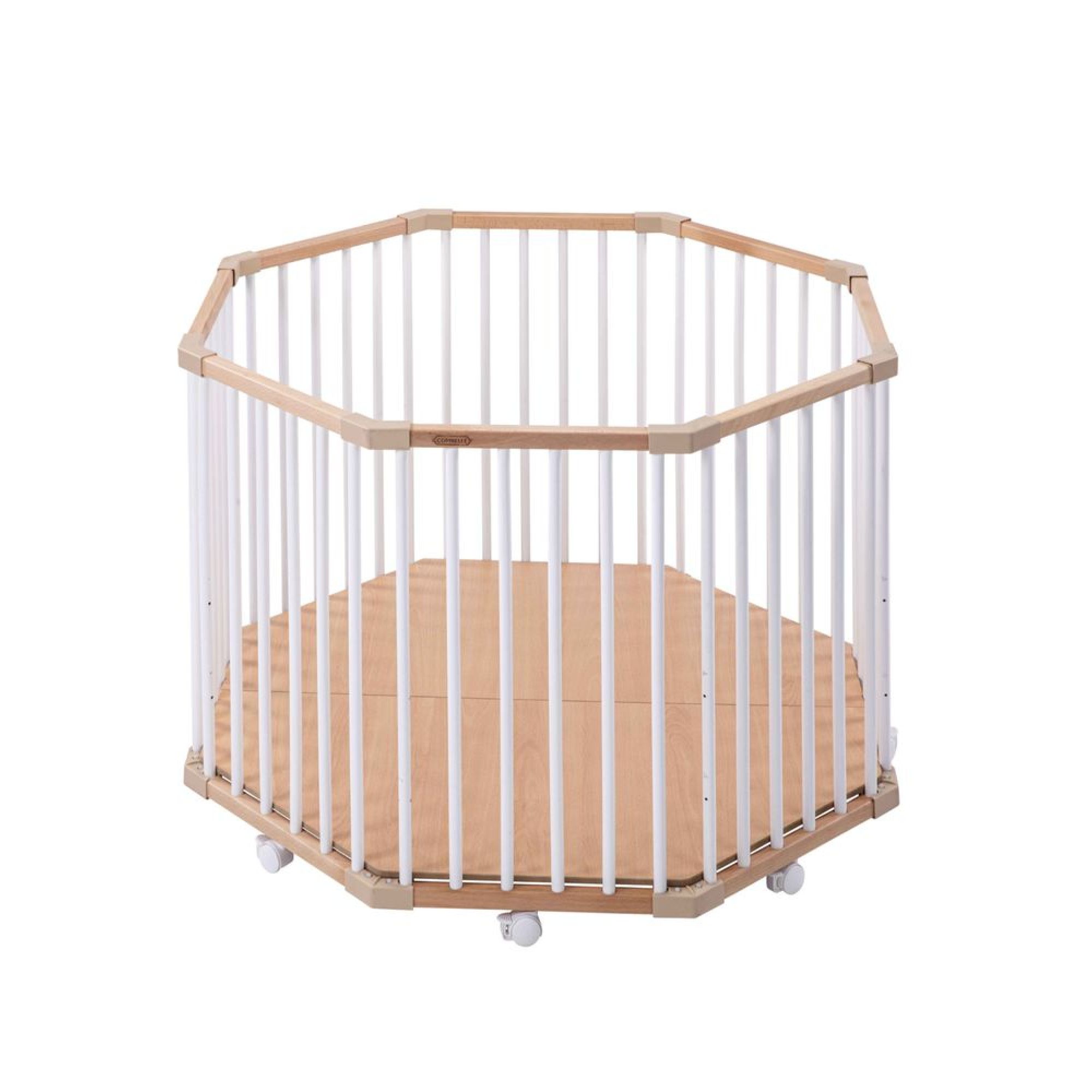 Craquez pour le parc octogonal bébé en bois Basile hybride blanc de la marque Combelle. Le plancher peut s'ajuster sur 3 hauteurs. Vous pourrez installer votre bébé dans ce parc pour qu'il se repose ou qu'il s'amuse.
