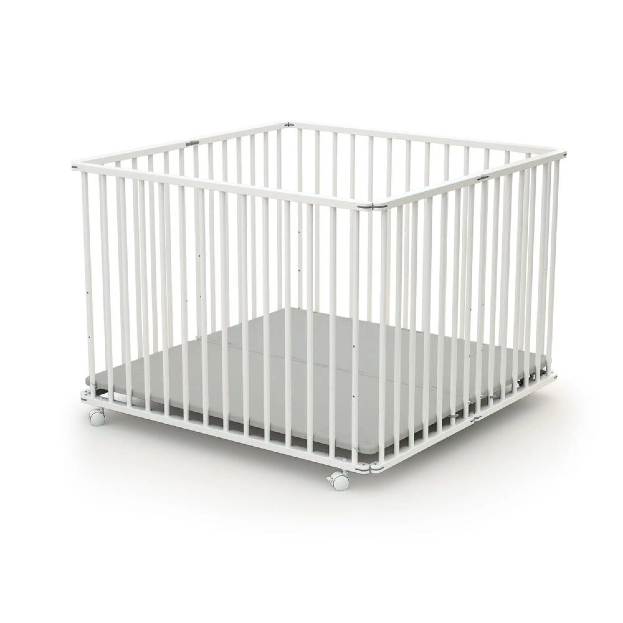 Optez pour le parc pliant WEBABY Blanc et Gris 100x100 de la marque AT4, pratique a ranger vous pourrez le déplacer facilement grâce à ces 4 roulettes munies freins. Ce parc rectangulaire offrira un espace de sécurité idéal pour que votre bébé puisse continuer à ce développer et s'amuser. Ce parc est aussi pliable est sera donc facile a ranger dans votre intérieur.