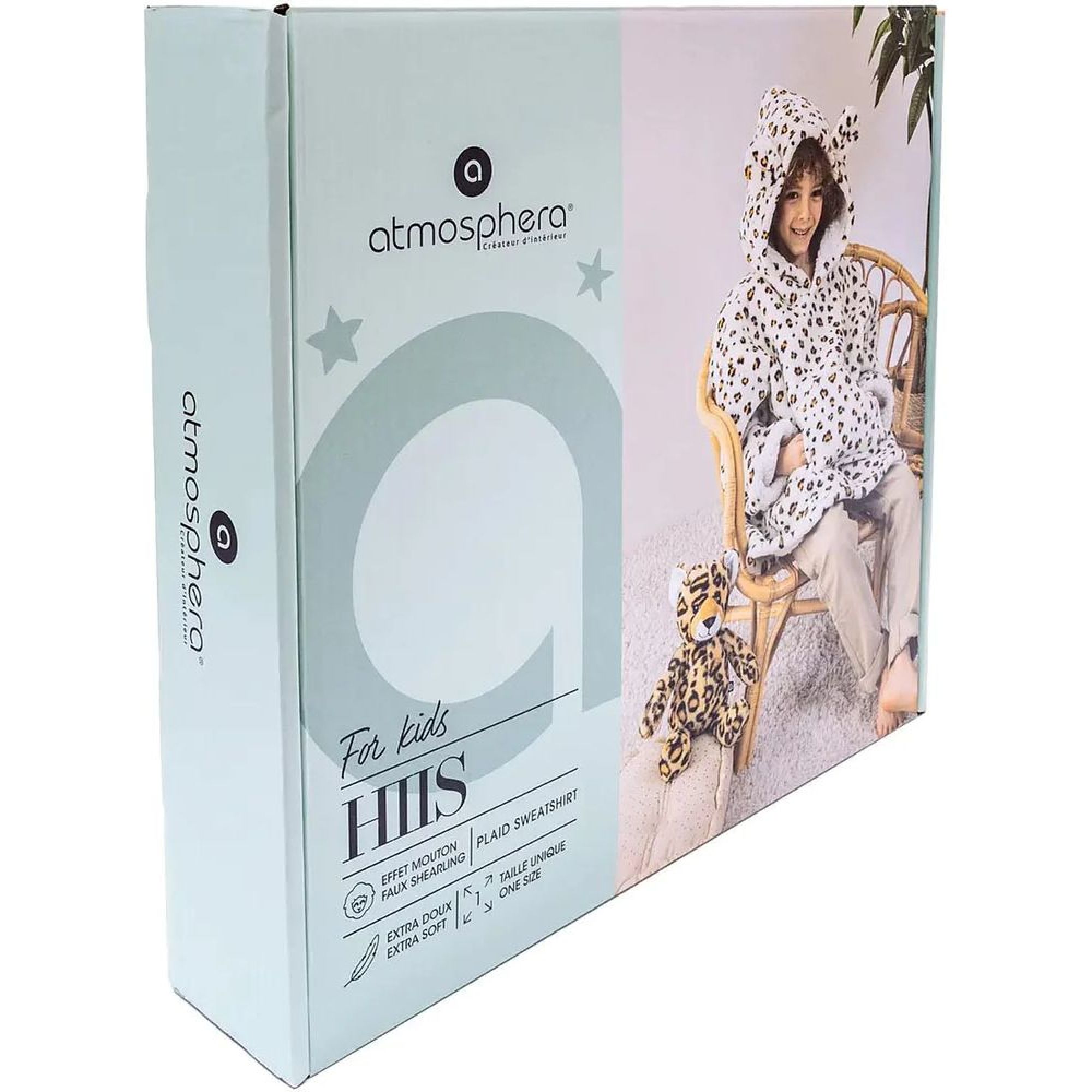 Découvrez le poncho sweat enfant en polaire douce et agréable ,Léopard de la marque Atmosphera for kids . Son design amusant comprend les éléments sur la capuche tel un Léopard . sa matière polaire crée un vrai cocon de douceur pour les momemts de repos ,de lecture ou de sortie du bain.
