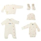 Comprend : 1 pyjama, 1 body, 1 bonnet, 1 cardigan, 1 paire de chaussons et 1 sac en tissu