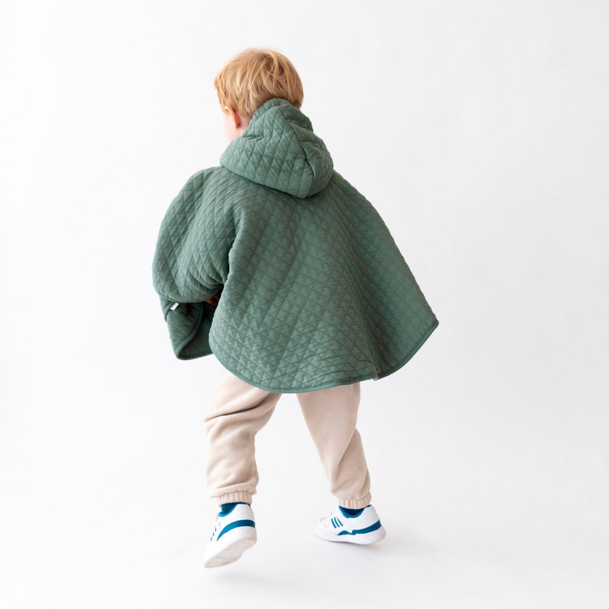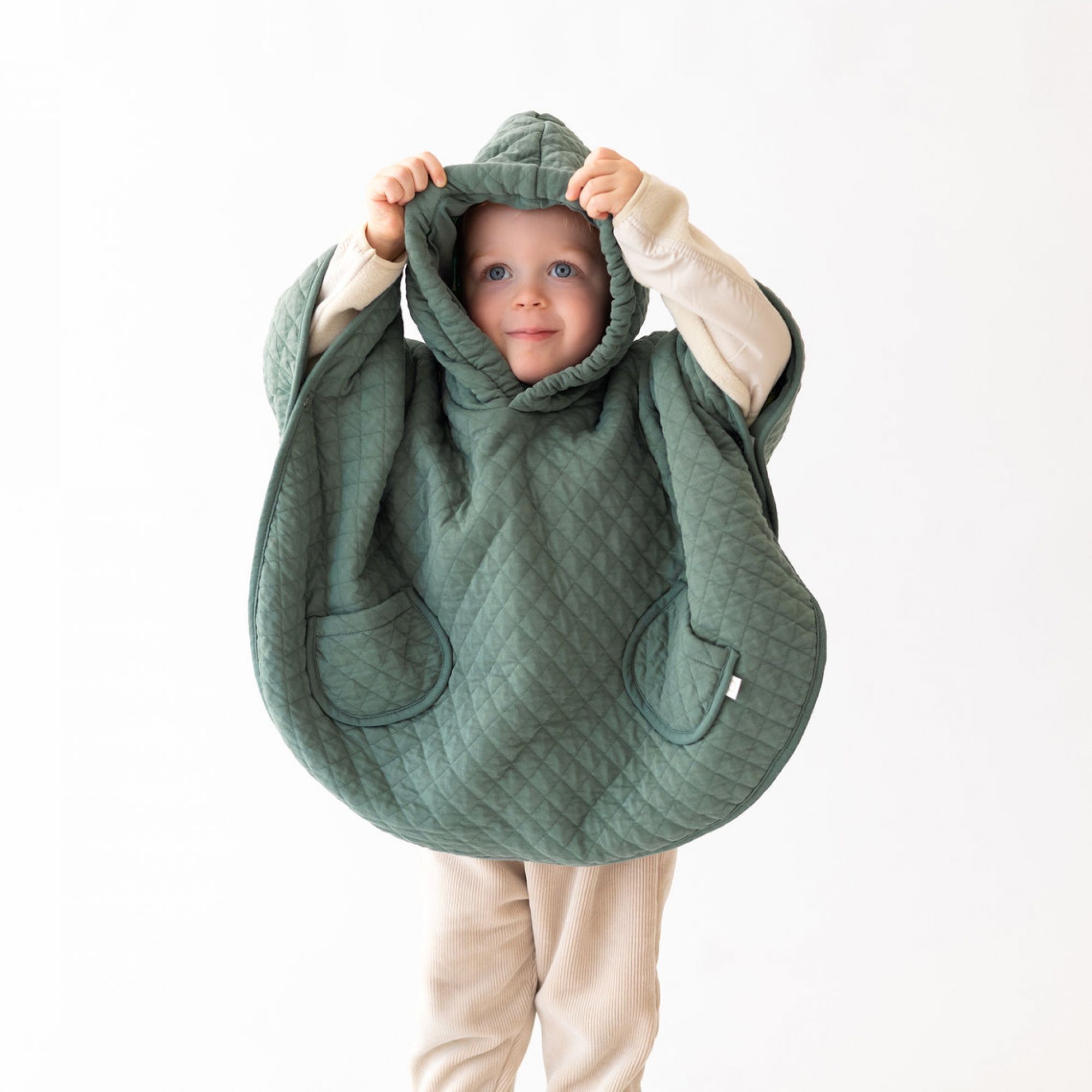 Craquez pour le poncho chaud de voyage pady quilted jersey vert de la marque Bemini. Ce produit va tenir bien au chaud votre bébé pendant vos sorties en extérieur ou même en voiture. Il respecte les normes de sécurité routière, votre enfant pourra donc conserver son poncho sur son siège auto. Vous pourrez créer des petites manches grâce aux pressions sur les emmanchures.