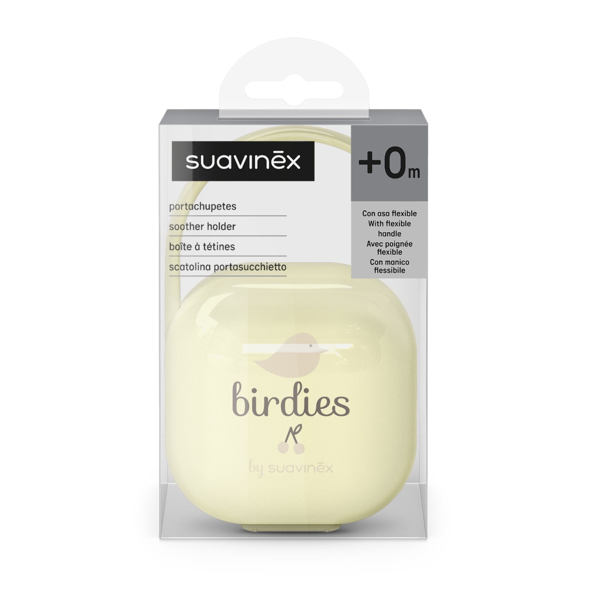 Le porte sucette Birdies de la marque Suavinex est l’accessoire idéal pour transporter les sucettes de bébé partout en toute hygiène. Compact et pratique, il peut contenir jusqu’à deux tétines afin d’en avoir toujours une de rechange à disposition. Grâce à son anse flexible, il s’attache facilement à la poussette, au sac à langer ou au sac à main, pour un accès rapide et sans encombre. Fabriqué en plastique résistant et garanti sans BPA, il protège efficacement les sucettes de la poussière et des saletés.