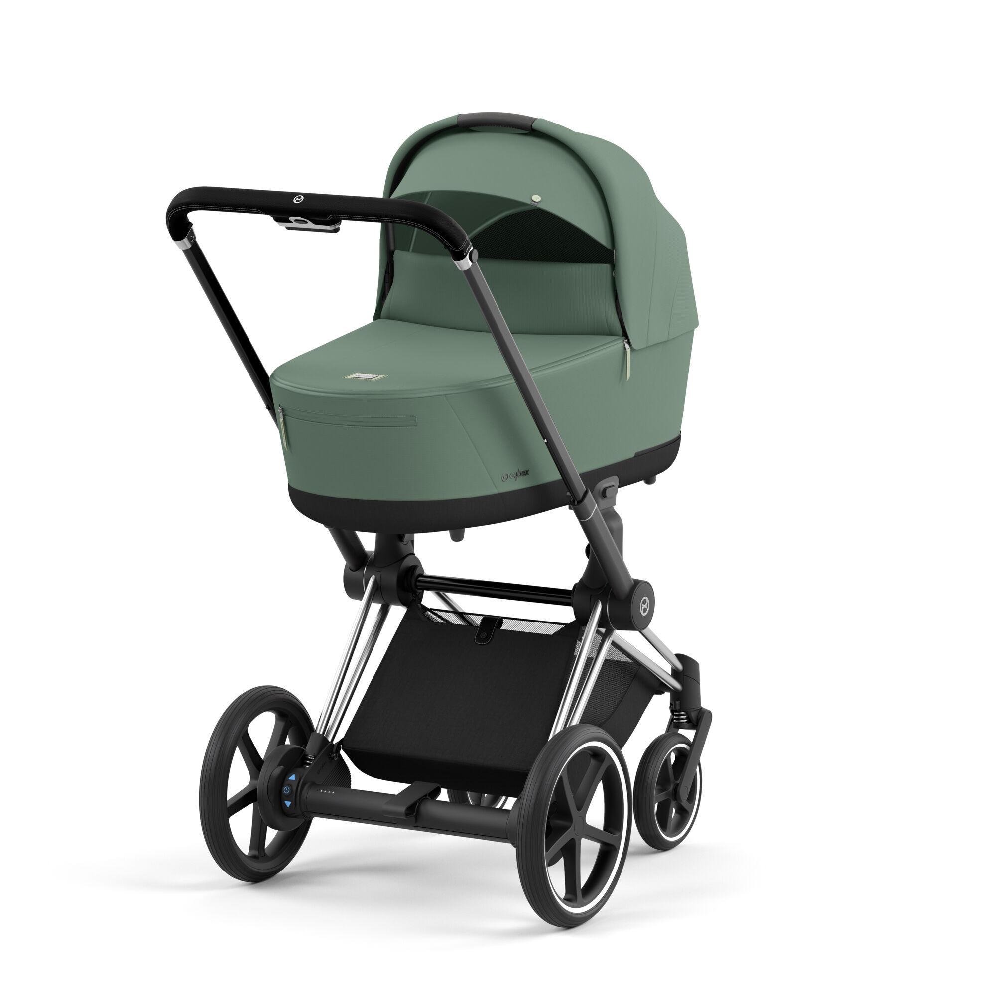 Poussette duo e-Priam 2 Leaf Green châssis Chrome Black + Nacelle Luxe