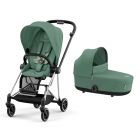 Choisissez la poussette duo Mios 3 Leaf Green châssis Chrome Black avec la nacelle Luxe Mios 3 de la marque Cybex. Utilisable dès la naissance de votre enfant jusqu'à ses 4 ans environ, cette poussette sera idéale pour la vie en ville. Elle est légère et facile à manier au quotidien avec son châssis compact. Elle pourra se ranger n'importe où et pourra être transportée lors de tous vos déplacements. Tous vos trajets se feront en douceur et en confort total pour votre enfant avec la suspension intégrale. Sécurisez votre enfant en quelques secondes avec le harnais ajustable à une main. Elle est compatible avec un travel system : ajoutez-y la nacelle Luxe Mios 3 qui transportera confortablement votre bébé durant les 6 premiers mois de sa vie. Elle se fixera en toute facilité au châssis de la poussette Mios 3 pour vous offrir des balades en famille confortables. La nacelle est spacieuse et confortable avec le matelas moelleux en mousse respirant.