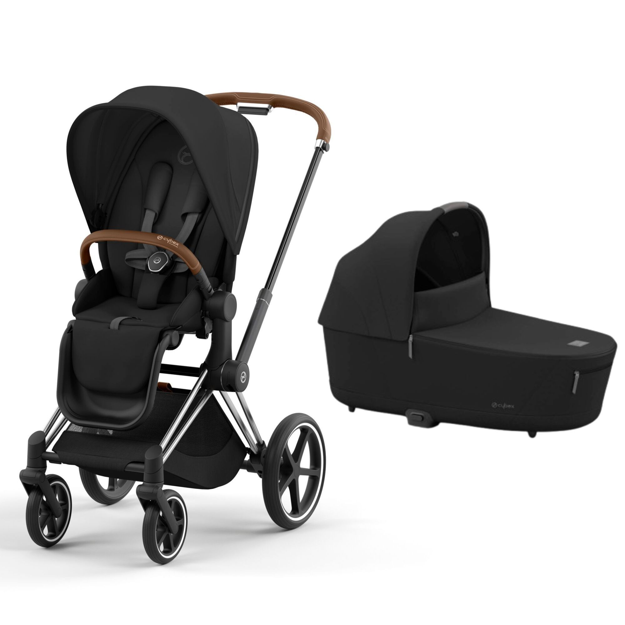 Poussette duo Priam 4 Sepia Black châssis Chrome Brown + Nacelle Luxe