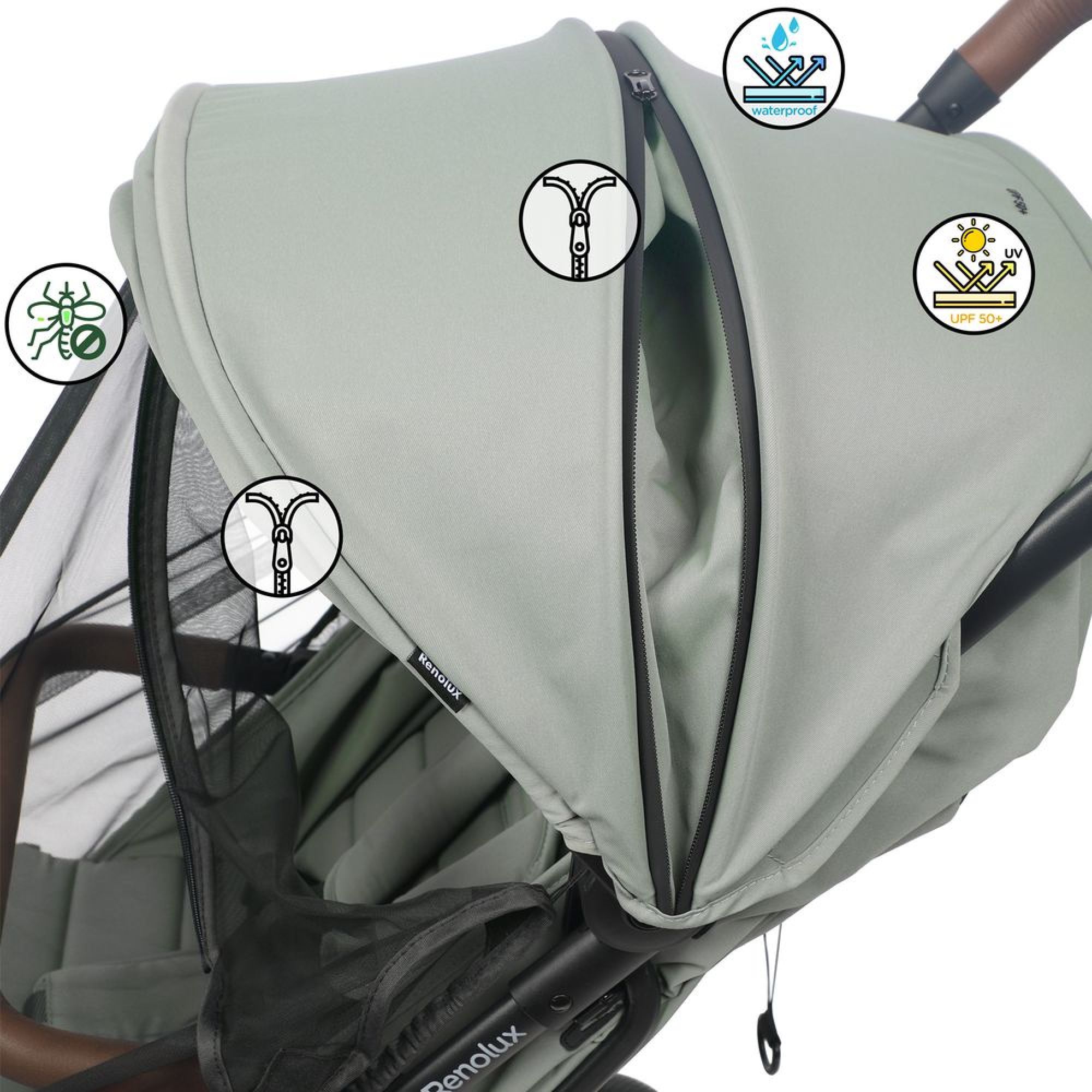 Découvrez la poussette Screen de la marque Renolux. La poussette Screen est un modèle compact et polyvalent, conçu pour accompagner l'enfant de la naissance jusqu'à 22 kg (environ 4 ans). Sa principale particularité est son système de protection intégrale contre les insectes et les intempéries grâce à une moustiquaire zippée sur le canopy, un grand filet d'aération à l'arrière avec rabat aimanté, et un habillage pluie complet inclus.