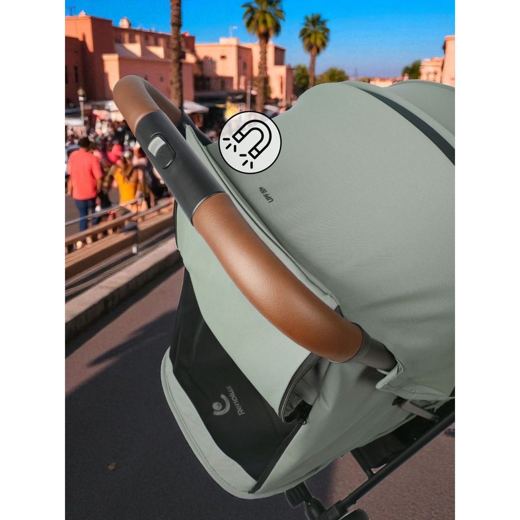 Très maniable avec son châssis léger en aluminium (7,2 kg), elle dispose d'un pliage compact d'une seule main et d'un dossier inclinable à plat pour le confort des nouveau-nés. Ses finitions élégantes incluent un guidon et une main courante en simili cuir, ainsi qu'un grand canopy waterproof traité anti-UV UPF 50+.