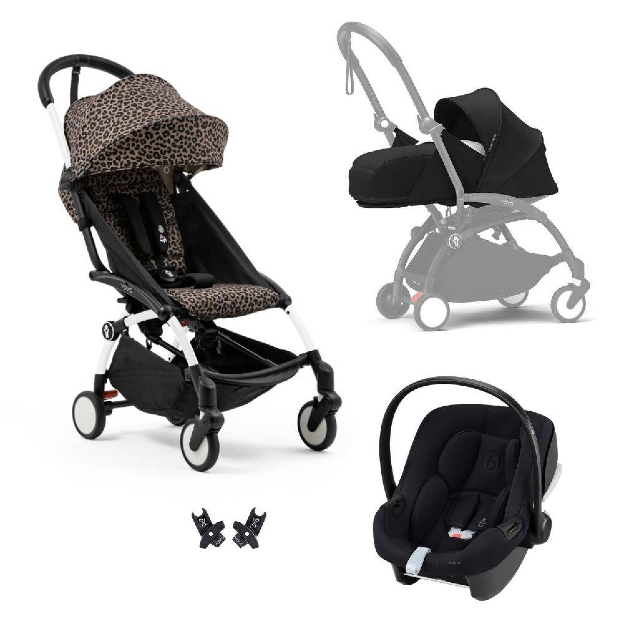 Découvrez la Poussette Trio YOYO 3 pack 0+ & 6+ et siège auto Aton B2 Black - Châssis Blanc - Leopard / Noir de la marque Stokke. Ce pack est composé de la poussette YOYO 3, du pack 0+ et du siège auto Aton B2 Cybex. Les adaptateurs sont inclus.