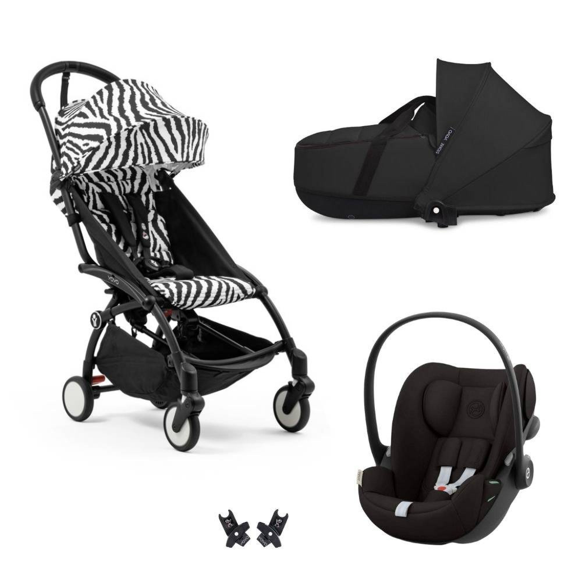 Craquez pour la Poussette Trio YOYO 3 pack 6+ et siège auto Cloud G Black + Nacelle YOYO - Chassis noir - Zebra / Noir de la marque Stokke. Ce pack est composé de la poussette YOYO 3, de la nacelle YOYO et du siège auto Cloud G Cybex. Les adaptateurs sont inclus.