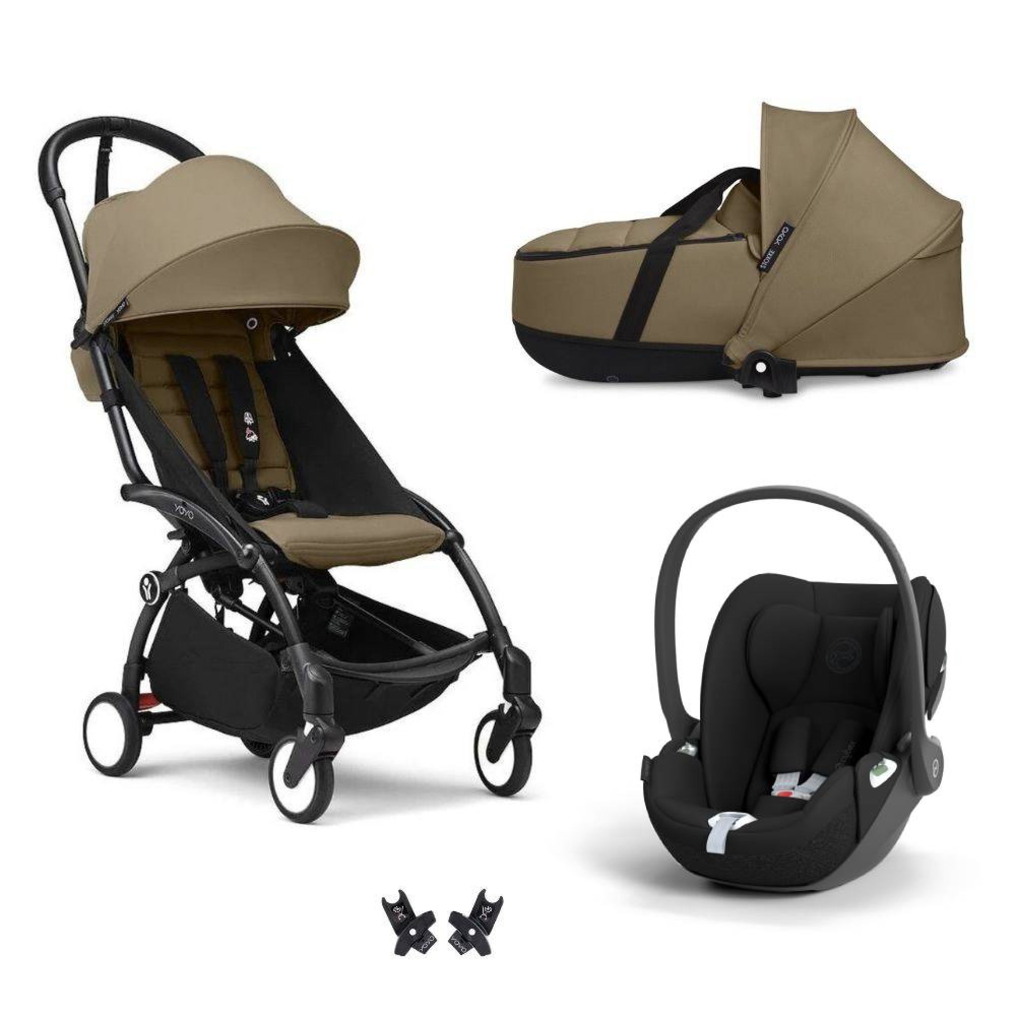 Optez pour la poussette trio YOYO + pack 6+ + siège auto Cloud T black + Nacelle - Châssis noir - Toffee de la marque Stokke. Ce pack est composé de la poussette YOYO 3, de la nacelle YOYO et du siège auto Cloud T. Les adapateurs sont inclus dans ce pack.