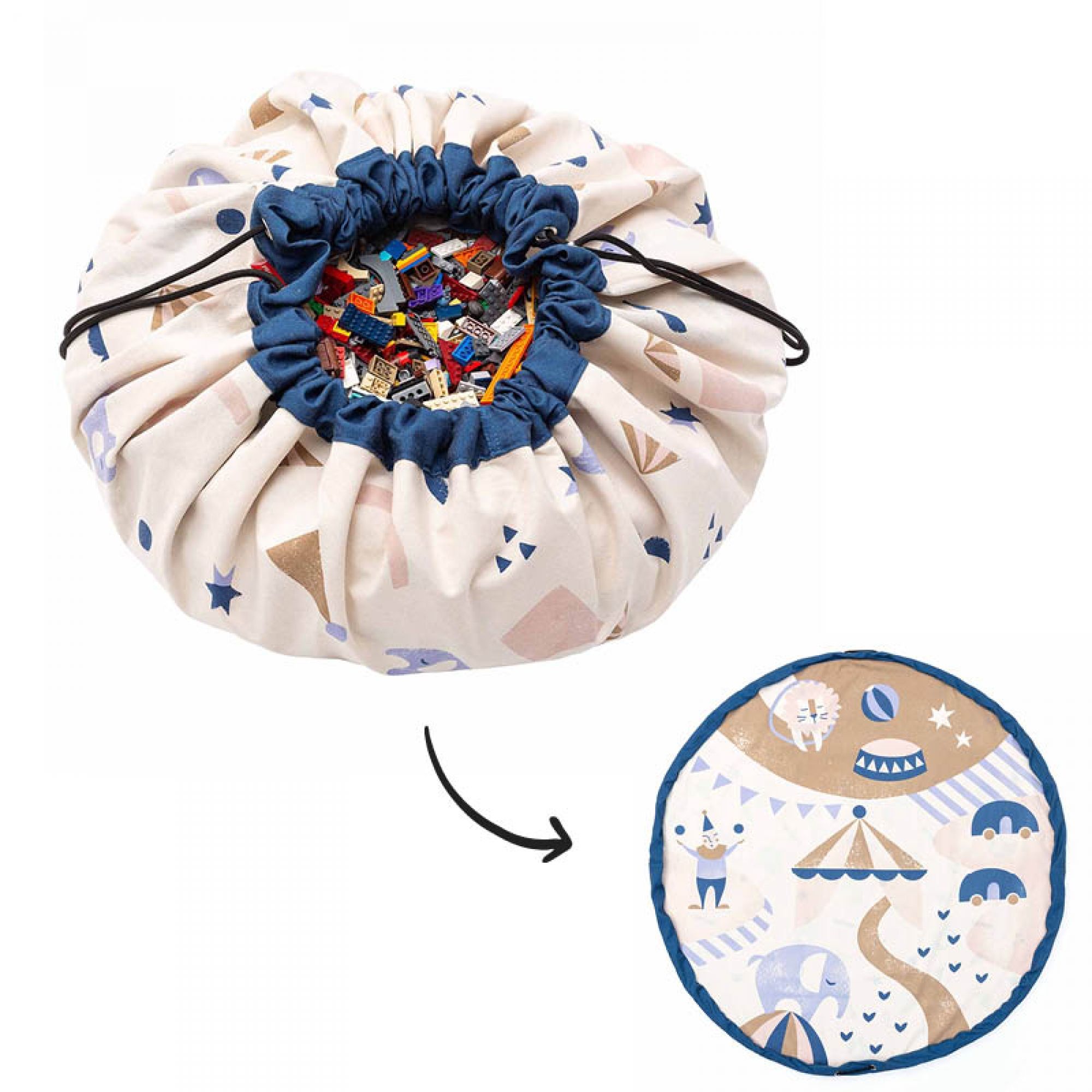 Enfin, une solution ingénieuse pour en finir avec les jouets éparpillés dans la chambre ou le salon ! Grâce au tapis de jeu Play&Go, le rangement devient un jeu d’enfant : une fois l’amusement terminé, il suffit de tirer sur les cordons et le tapis se transforme instantanément en sac de rangement.