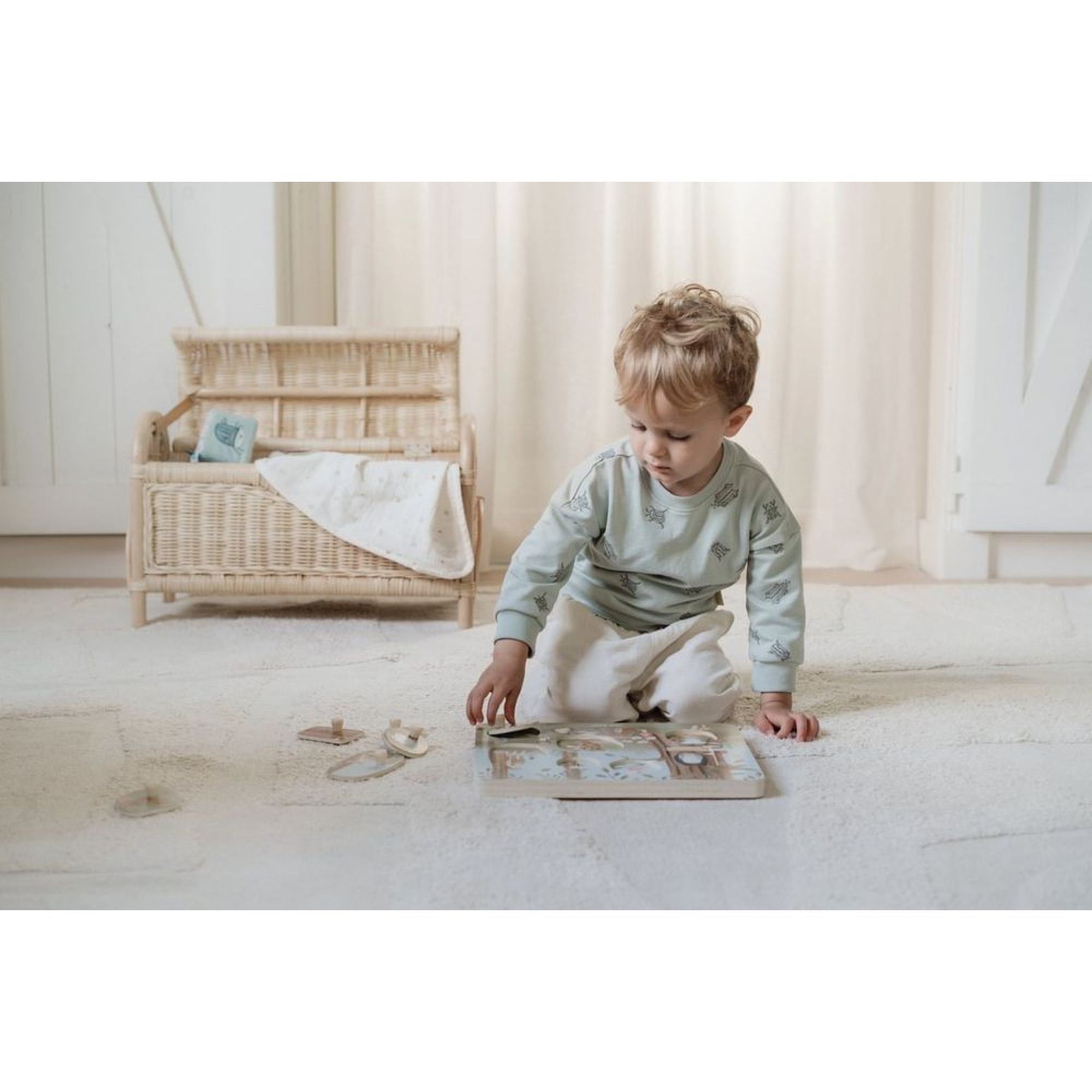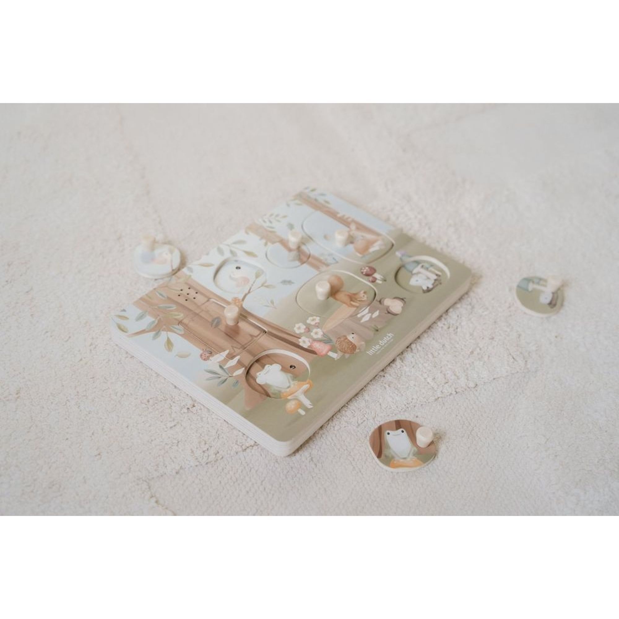 Découvrez le puzzle sonore en bois FSC de la marque Little Dutch. C'est un jouet d'éveil conçu pour initier les tout-petits au monde de la forêt tout en stimulant leurs sens et leur développement. Le puzzle est fabriqué en bois certifié FSC (Forest Stewardship Council), garantissant que le bois est issu d'une gestion forestière durable et responsable.