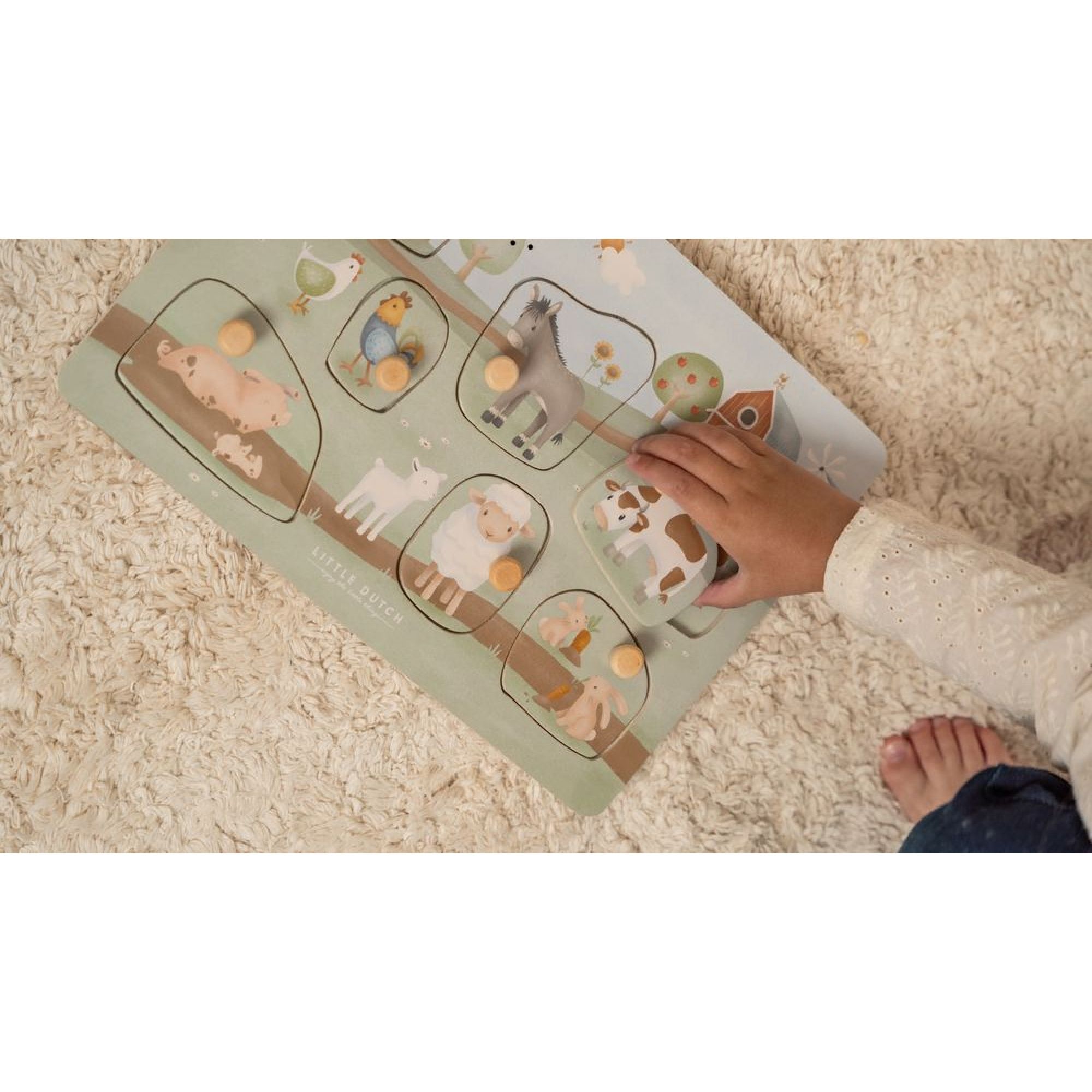 Découvrez le puzzle sonore en bois FSC de la marque Little Dutch. C'est un jouet d'éveil conçu pour initier les tout-petits au monde de la forêt tout en stimulant leurs sens et leur développement. Le puzzle est fabriqué en bois certifié FSC (Forest Stewardship Council), garantissant que le bois est issu d'une gestion forestière durable et responsable.