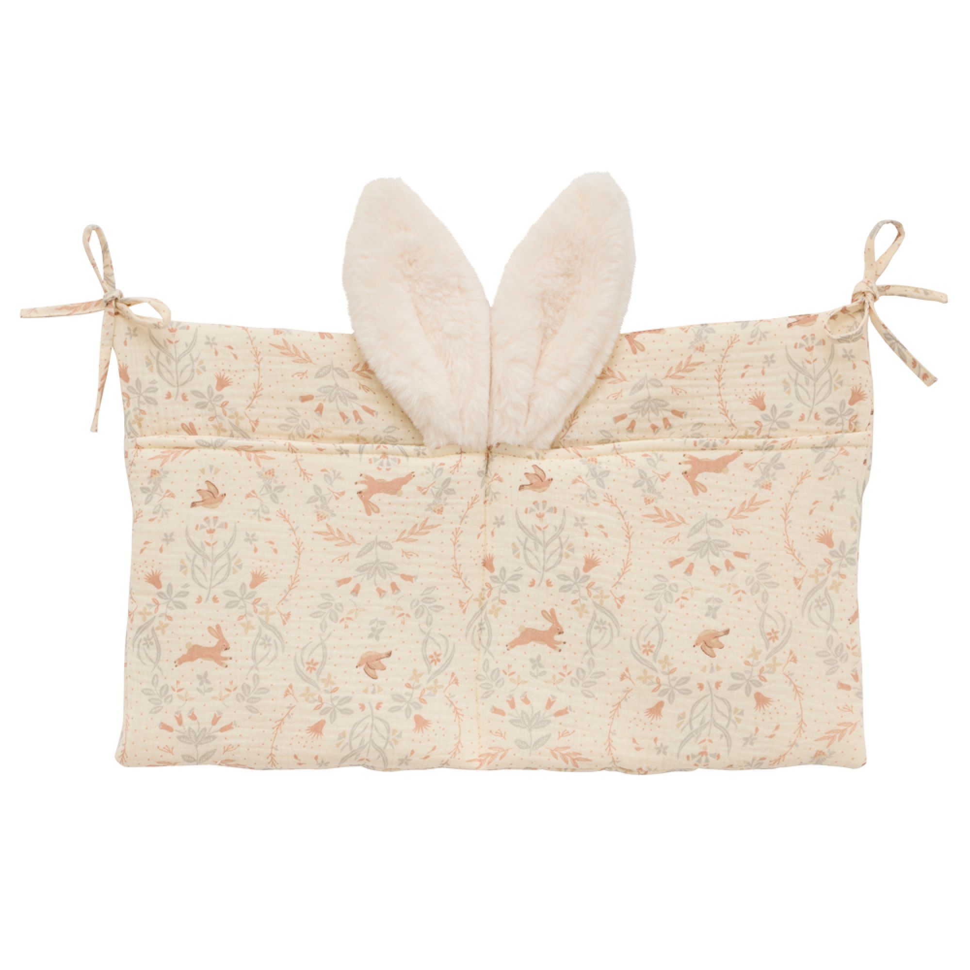 Apportez une touche de poésie et d’organisation à la chambre de bébé avec la pochette Range-pyjama et doudous Jardin enchanté de BB&CO. Entièrement ouatinée, elle se fixe facilement au lit grâce à ses nouettes et permet de garder à portée de main tous les indispensables du quotidien : pyjama, doudou, tétine ou petits accessoires. À la fois pratique et décorative, elle s’intègre harmonieusement dans l’univers de votre bébé tout en facilitant le rituel du coucher.