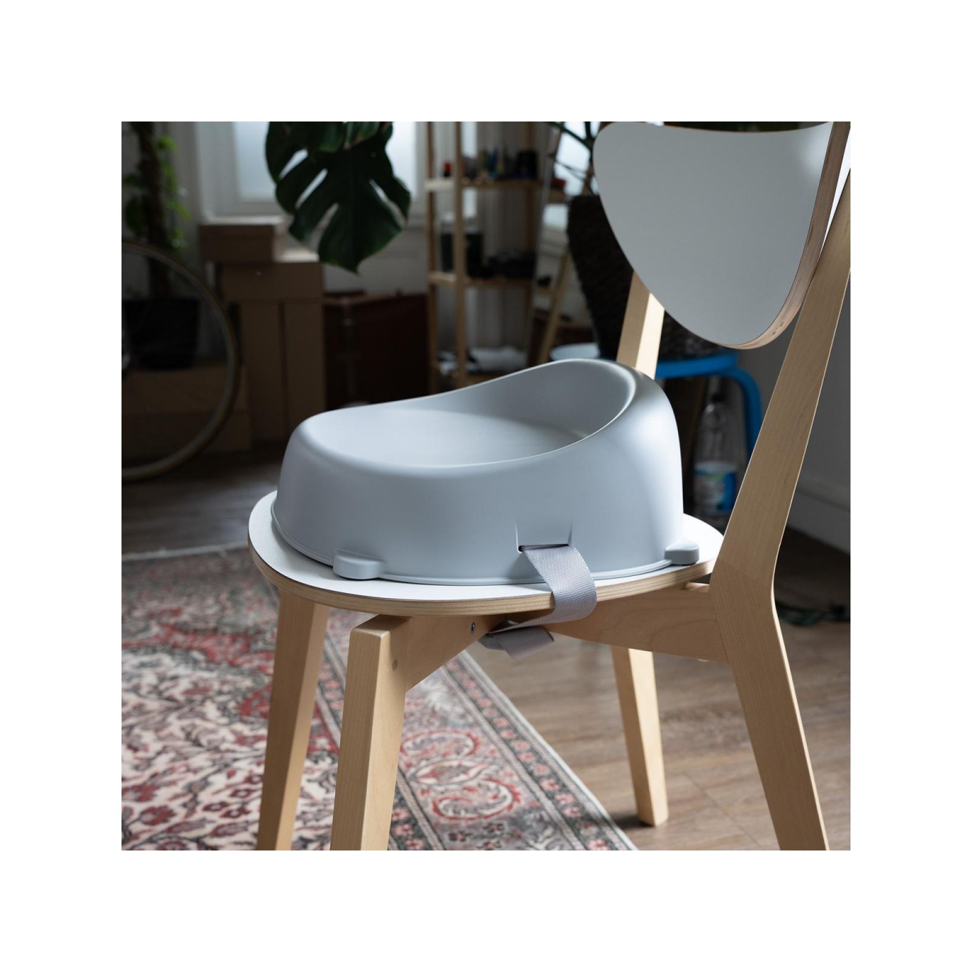 Ce siège élévateur se distingue par sa simplicité de mise en place et sa stabilité remarquable une fois installé sur une chaise standard. Sa coque en polypropylène haute densité a été spécialement étudiée pour résister aux manipulations quotidiennes tout en restant très douce au toucher. Les sangles réglables permettent d'adapter solidement le réhausseur au dossier et à l'assise de la chaise familiale, évitant ainsi tout risque de glissement. Sa finition mate en Gris Velours apporte une touche de modernité discrète à votre intérieur, tandis que sa surface lisse permet un nettoyage complet d'un seul coup d'éponge après chaque repas.