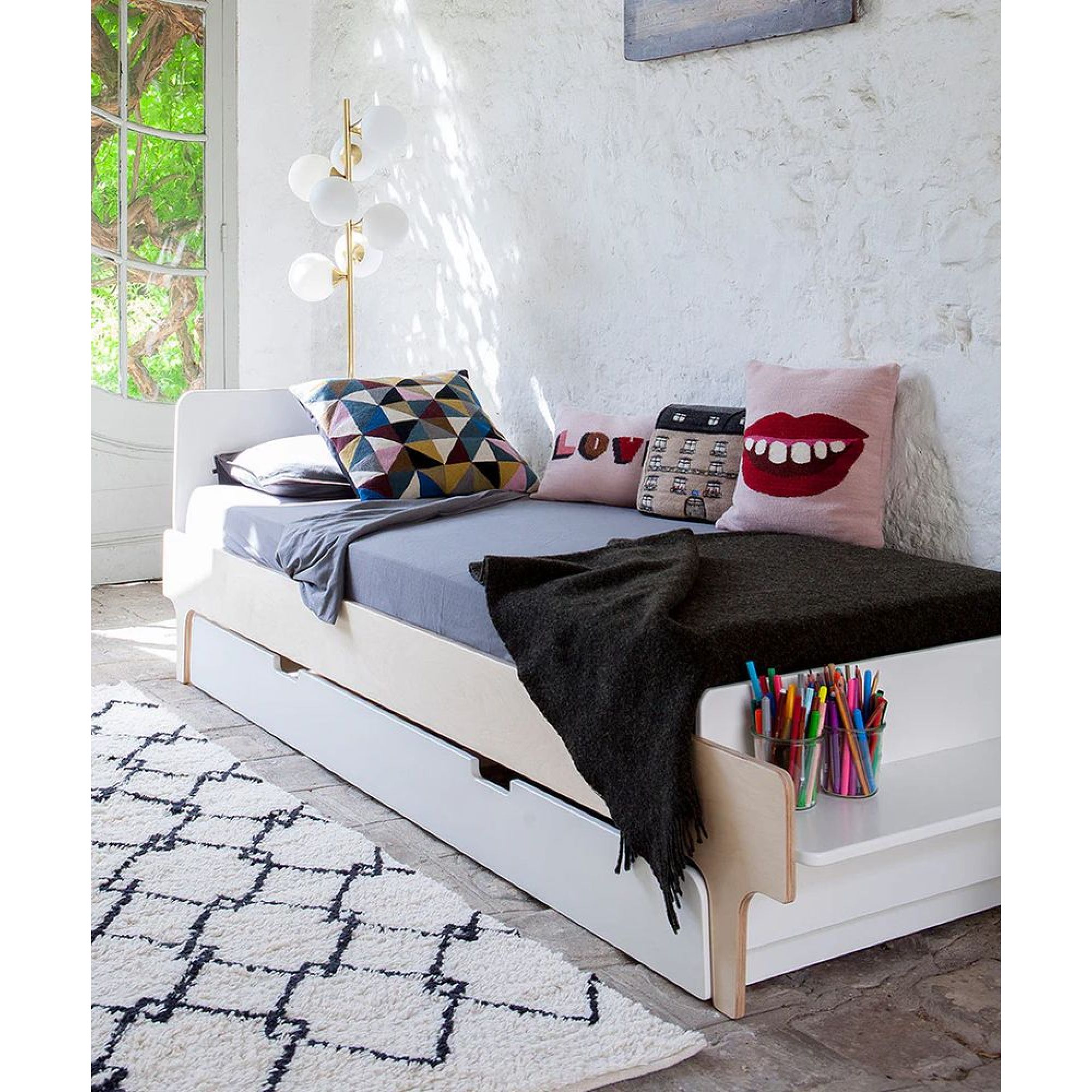 Optimisez chaque centimètre carré avec ce lit gigogne gain de place, conçu pour s'harmoniser parfaitement avec notre lit simple River de la marque Oeuf. Il crée un espace modulable toujours à portée de main, idéal pour les soirées pyjama ou pour ranger du linge de lit supplémentaire et des vêtements de saison. Les lits gigognes Oeuf nécessitent notre matelas de lit gigogne exclusif.