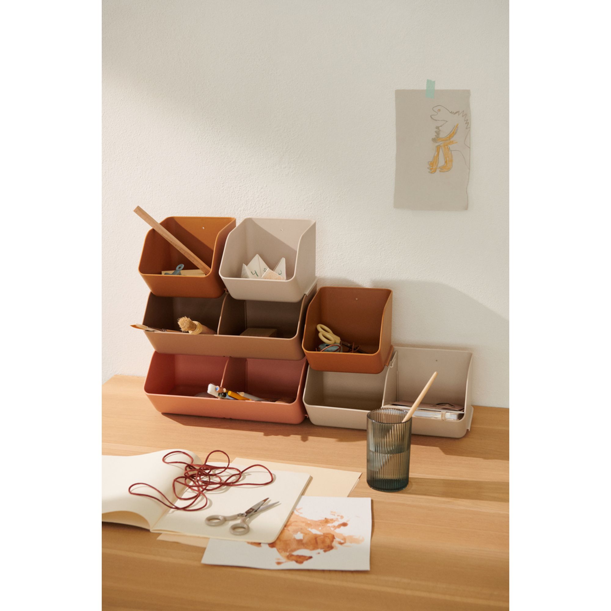 Le système de rangement Rosemary est pensé pour allier praticité et esthétique. Sa taille moyenne est idéale pour trier les petits accessoires du quotidien : fournitures scolaires, matériel créatif, petites pièces de construction ou encore perles. Sa modularité permet de s’adapter facilement aux besoins évolutifs de toute la famille, à la maison comme au bureau.