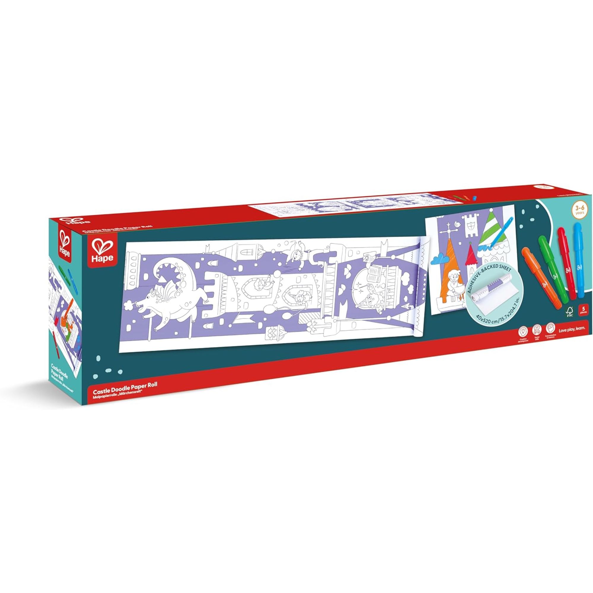 Découvrez le rouleau à dessin enfant avec feutre Château fort Hape qui invite les petits artistes à plonger dans un univers enchanté rempli de châteaux, de princesses et de créatures fantastiques. Avec ses 5 mètres de long, ce grand rouleau adhésif offre une toile d’expression idéale pour développer la motricité fine et la créativité. Facile à coller sur un mur, une table ou le sol grâce à son dos autocollant repositionnable, il se retire sans laisser de traces ni abîmer les surfaces. Chaque section est pré-découpée tous les 40 cm, ce qui permet de découper et d’emporter facilement les dessins ou de les exposer à la maison. Livré avec 4 crayons de cire, il est prêt à l’emploi pour des heures de coloriage magique et sans contrainte !