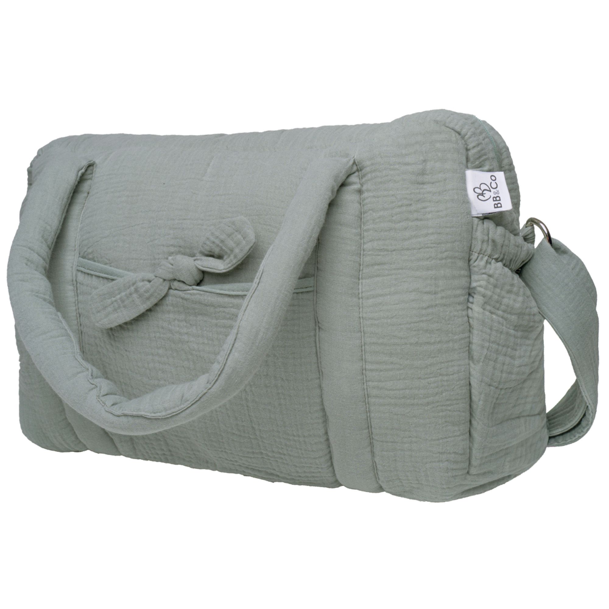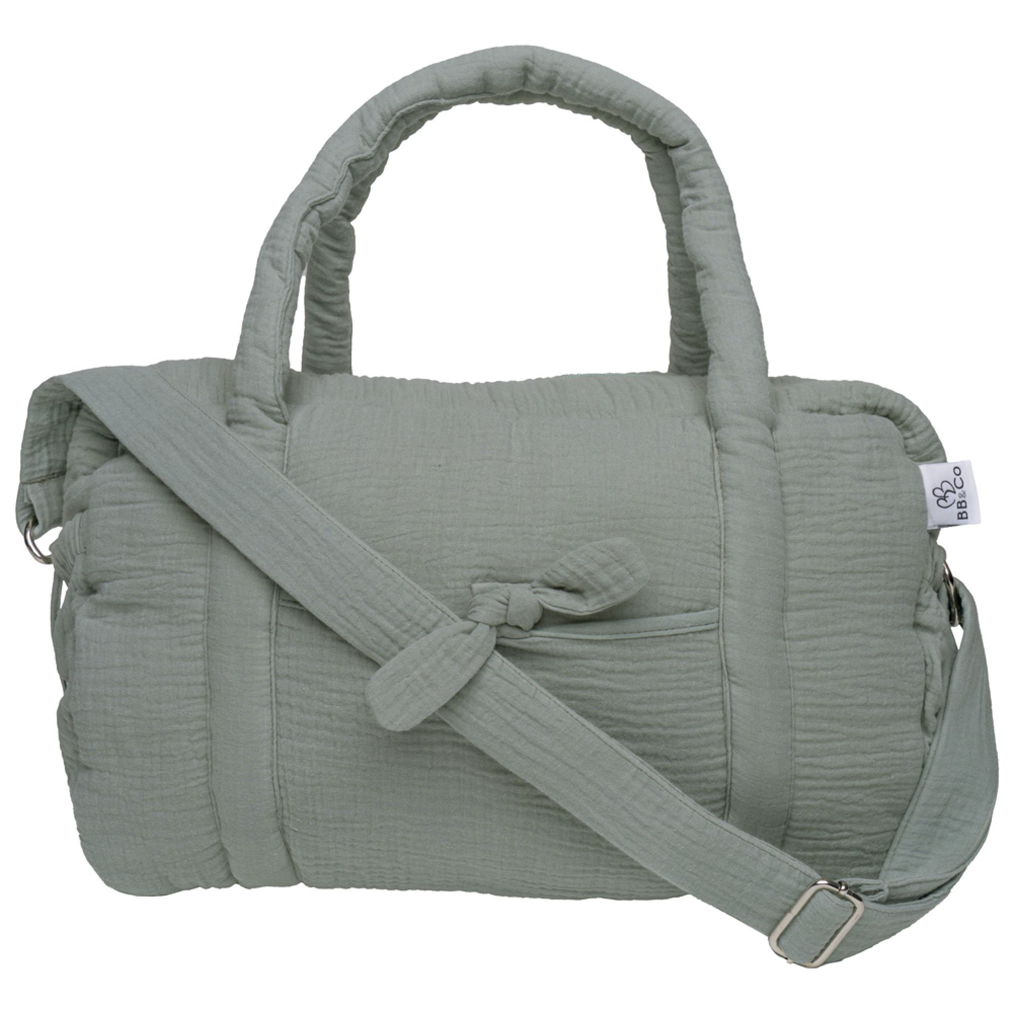 Alliez élégance et praticité avec ce sac à langer en gaze de coton coloris vert de gris de BB&CO. Pensé pour simplifier le quotidien des parents, il offre une grande capacité de rangement et de multiples poches pour organiser facilement toutes les affaires de votre bébé. Son design raffiné s’adapte à toutes vos sorties, de la balade au week-end en famille. Confortable à porter grâce à ses différentes options de transport, il deviendra rapidement un indispensable de votre quotidien.