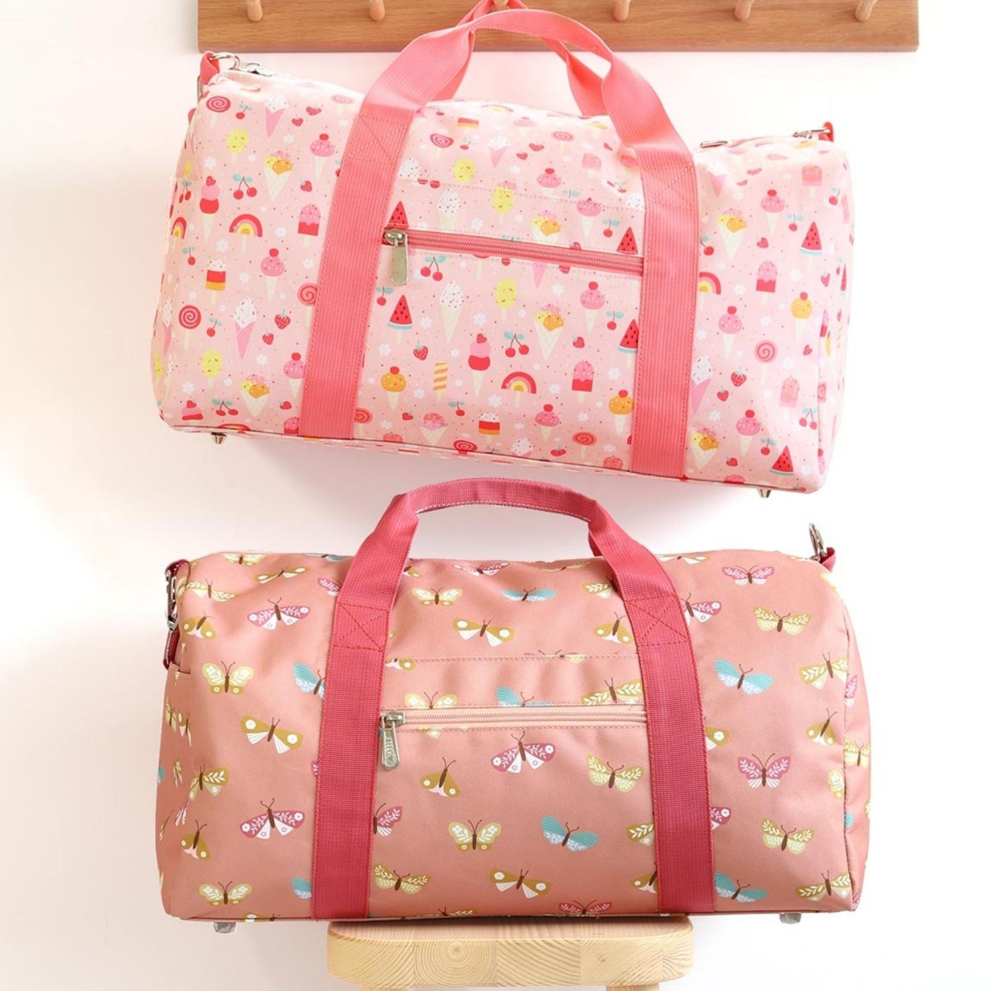Craquez pour le sac week-end enfant Crème glacée de la marque A Little Lovely Company. Pratique lors de vos déplacements pour transporter toutes les affaires de bébé. Il comprend un compartiment principal avec une poche supplémentaire, deux poches latérales et une poche avant zippée. Pratique, il dispose d'une double poignée et d'une bandoulière réglable et amovible afin de le transporter en toute facilité. Disponible en plusieurs modèles.
