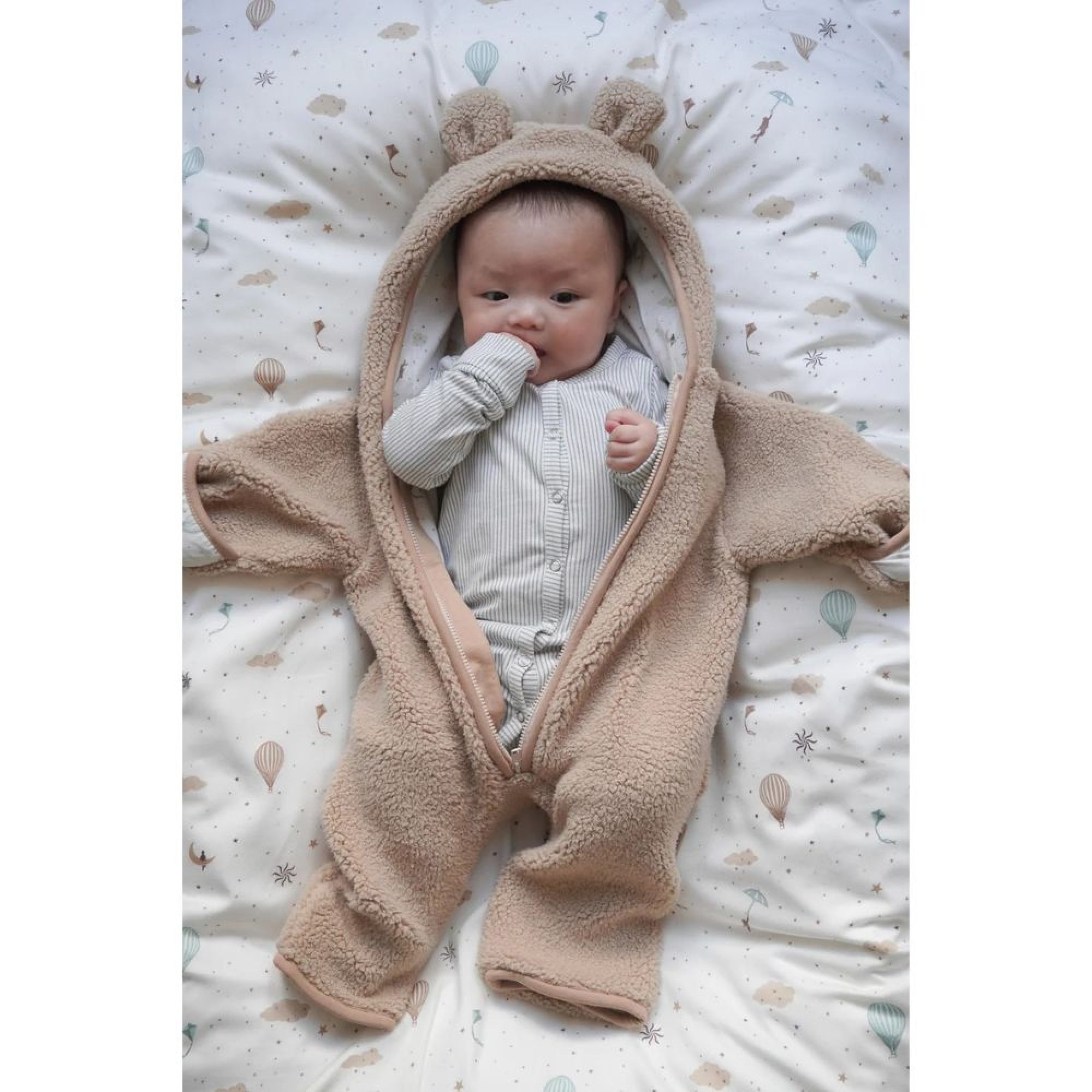 Cette combinaison a été pensée pour offrir chaleur et confort à bébé lors des journées fraîches. Son extérieur en sherpa procure une sensation douce et enveloppante, tandis que sa doublure en coton biologique assure respirabilité et confort. Elle est adaptée aussi bien pour un usage quotidien que pour les sorties en extérieur.