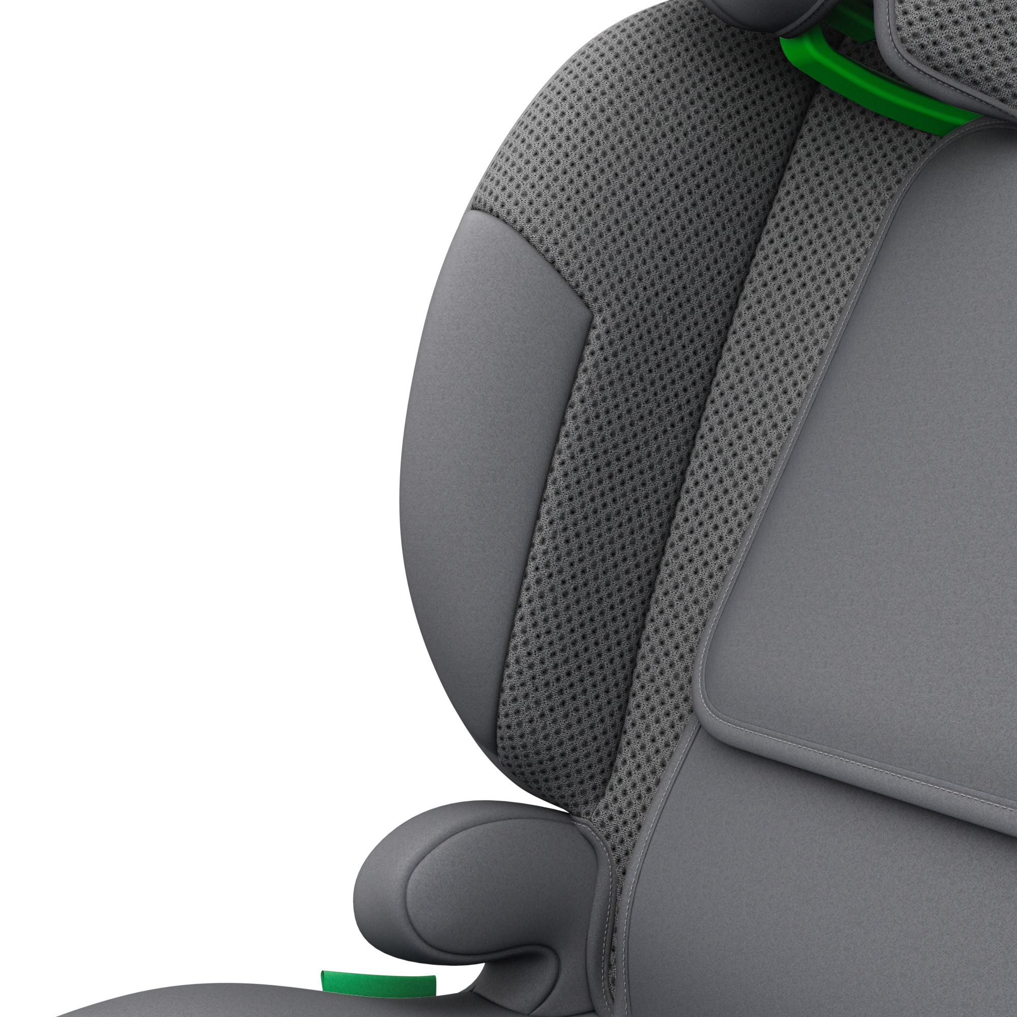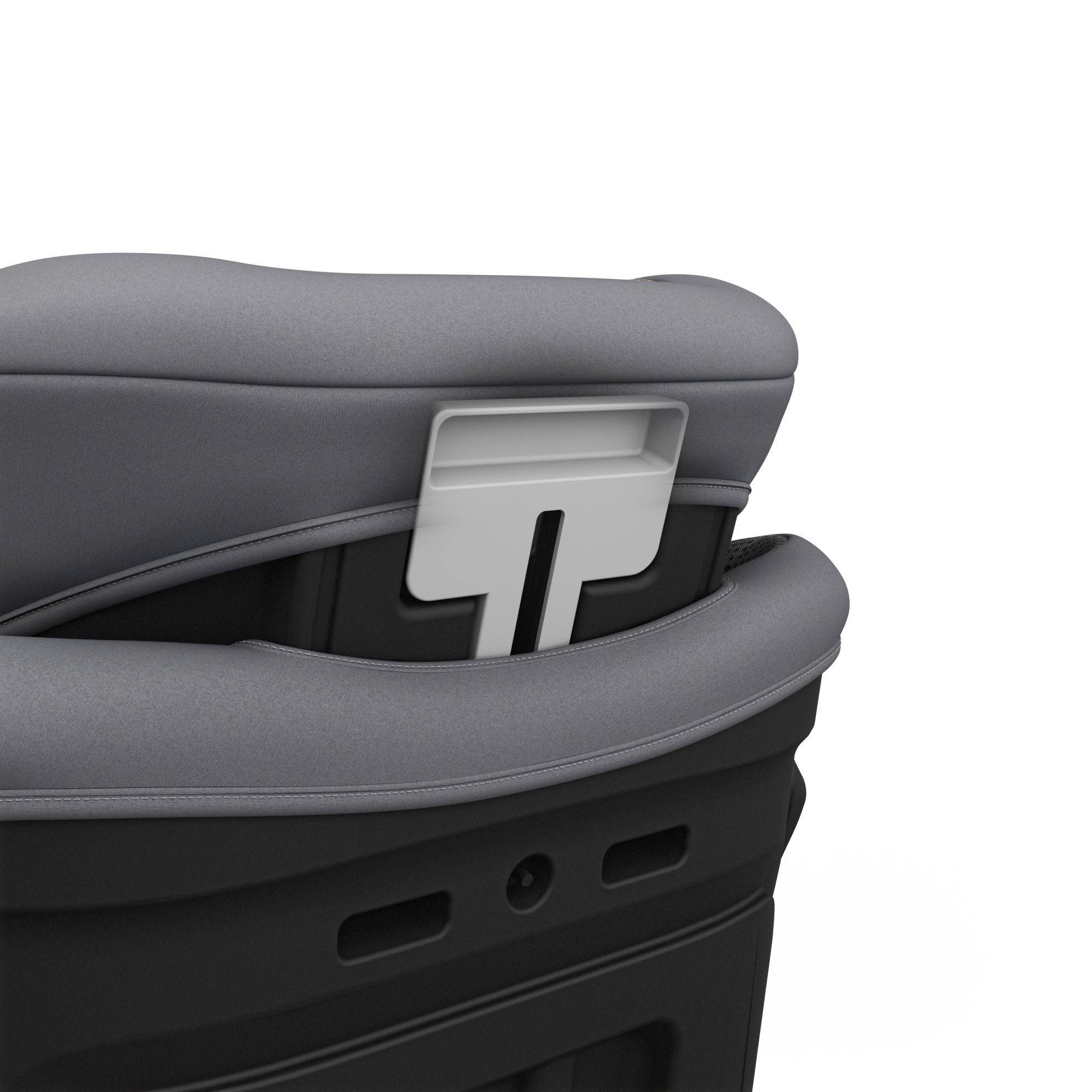 La largeur de l'assise est ajustable pour s'adapter à la morphologie de l'enfant. Son aération latérale permet une circulation de l'air optimale. Il est équipé d'un espace de rangement pour les accessoires.