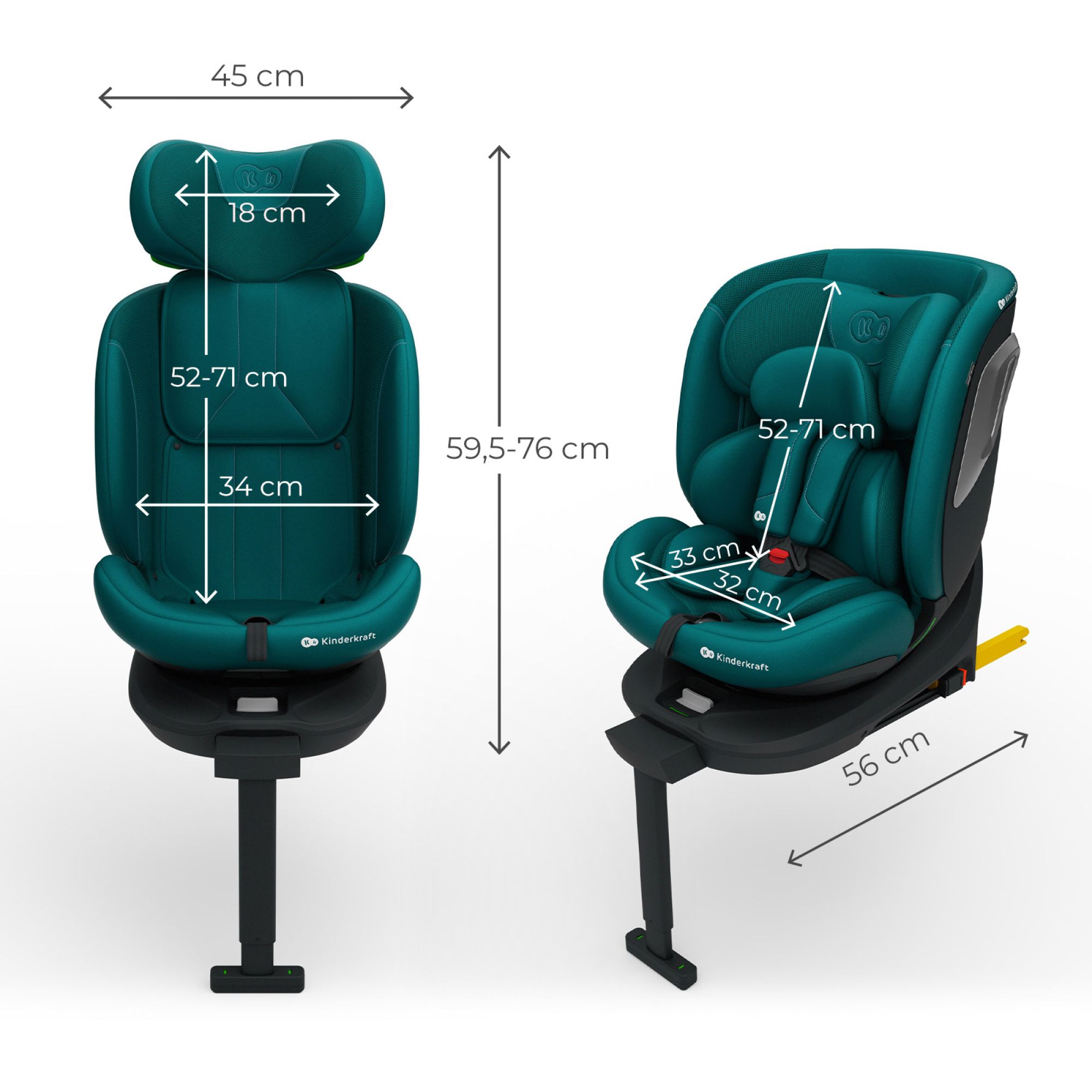 Le siège auto I-360² Plus i-Size de Kinderkraft est conçu pour accompagner votre enfant de la naissance à environ 12 ans (36 kg/150 cm). Ce siège évolutif offre une sécurité et un confort optimaux tout au long de la croissance de votre enfant, grâce à ses nombreuses fonctionnalités innovantes.