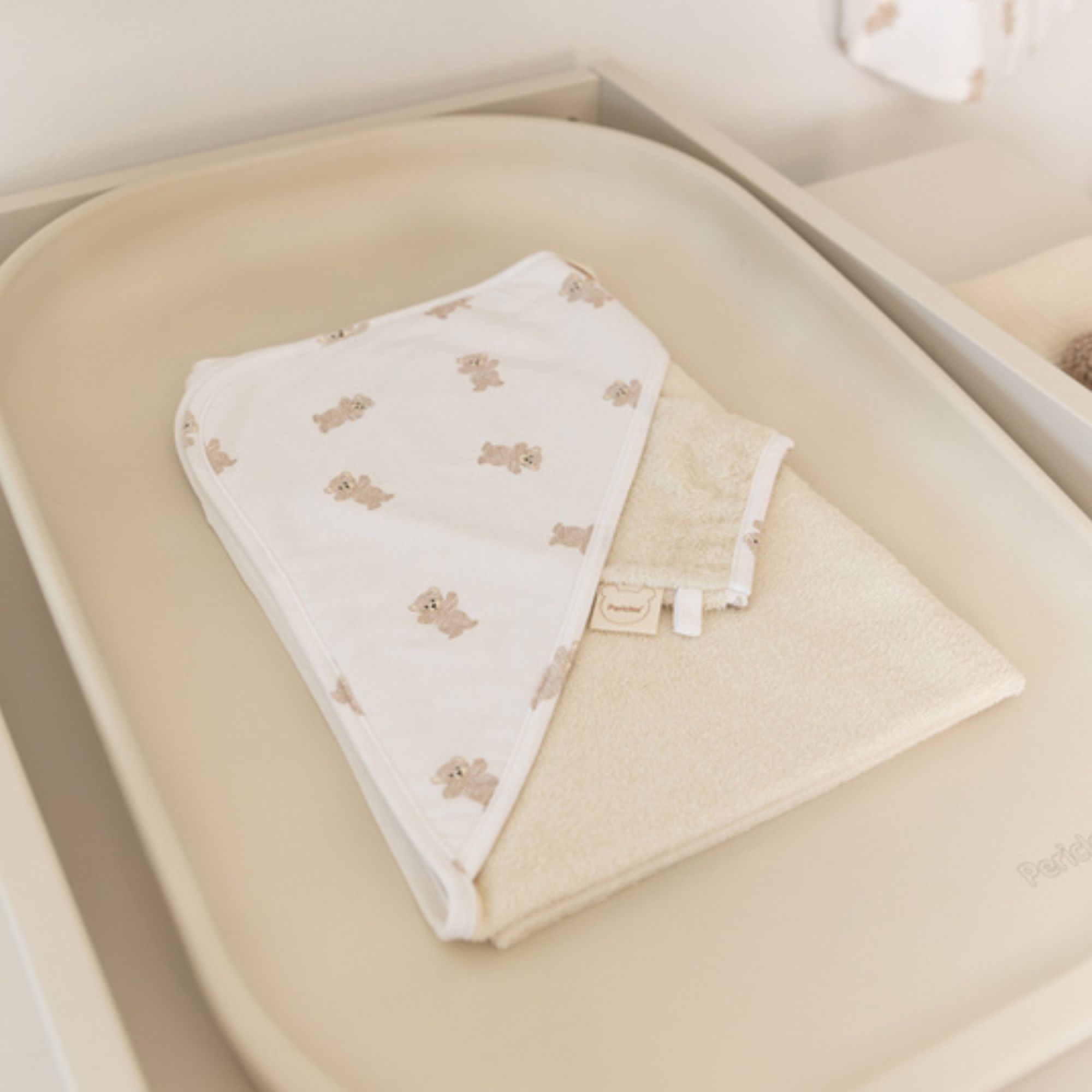 Craquez pour cette cape de bain bébé et gant Bear Allover de la marque Pericles. Apportez une touche de tendresse au moment du bain avec cette cape de bain accompagnée de son gant assorti. Conçue pour offrir un maximum de douceur et de confort, elle enveloppe votre bébé dans un cocon chaud et moelleux dès la sortie de l’eau.