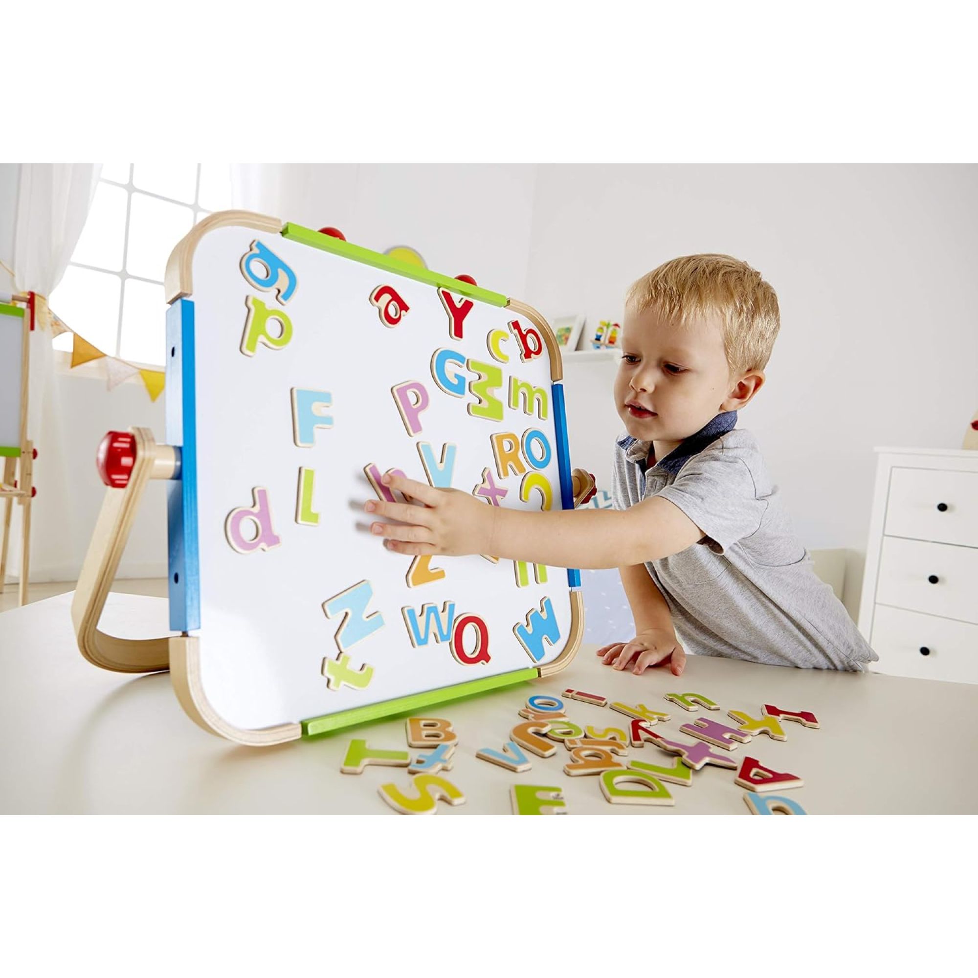 Découvrez le tableau portatif réversible en bois Hape accompagne les enfants dans leurs premières créations artistiques. Ce tableau double face propose un côté blanc magnétique pour les feutres effaçables et les magnets, et un côté noir ardoise pour les craies. Compact et facilement transportable, il se pose sur une table, un bureau ou même dans le salon pour des heures de dessin et d’apprentissage. Idéal pour les filles et garçons dès 3 ans, ce jouet éducatif stimule la créativité, la motricité fine et l’imagination à travers le jeu. Un indispensable pour les petits artistes qui aiment s’exprimer librement !