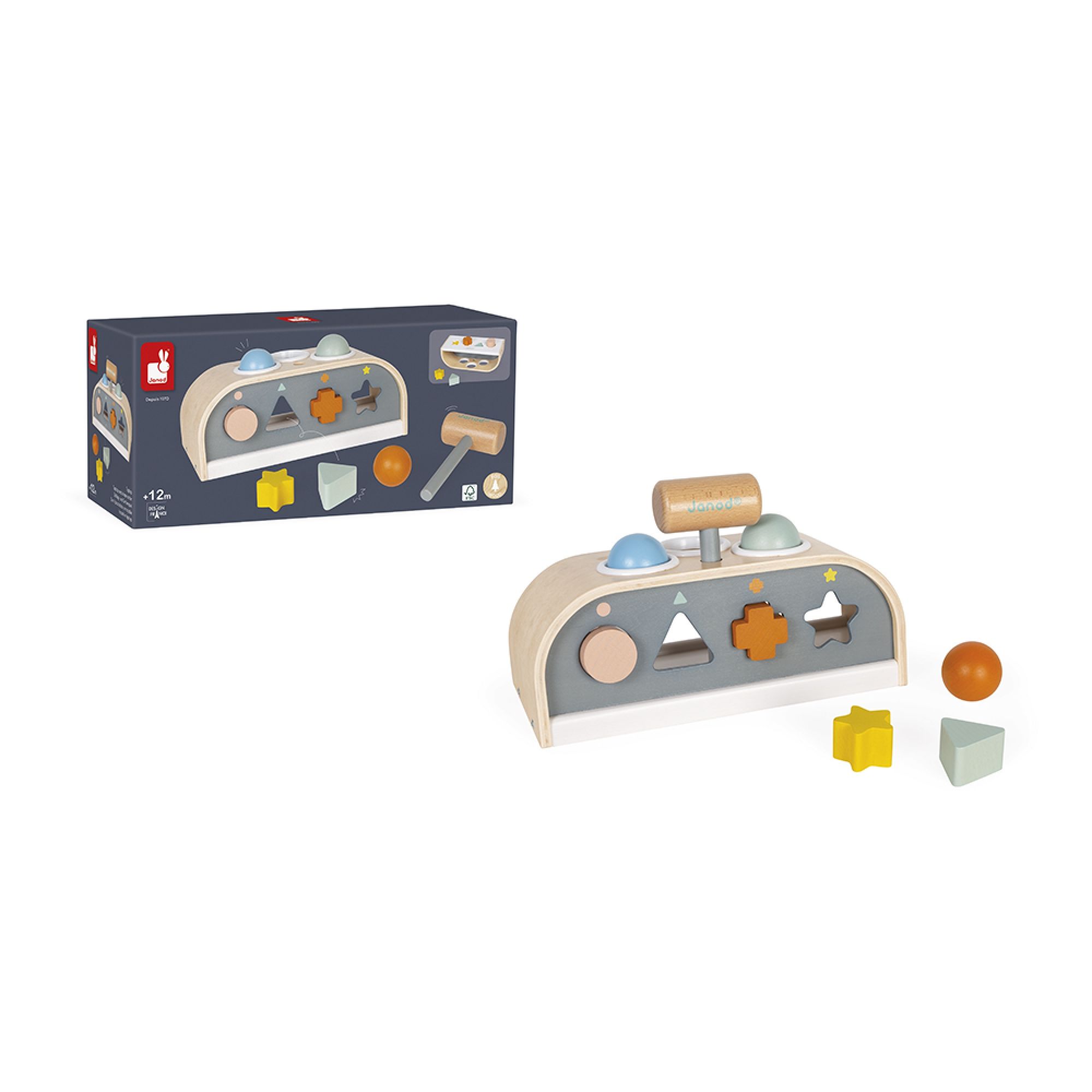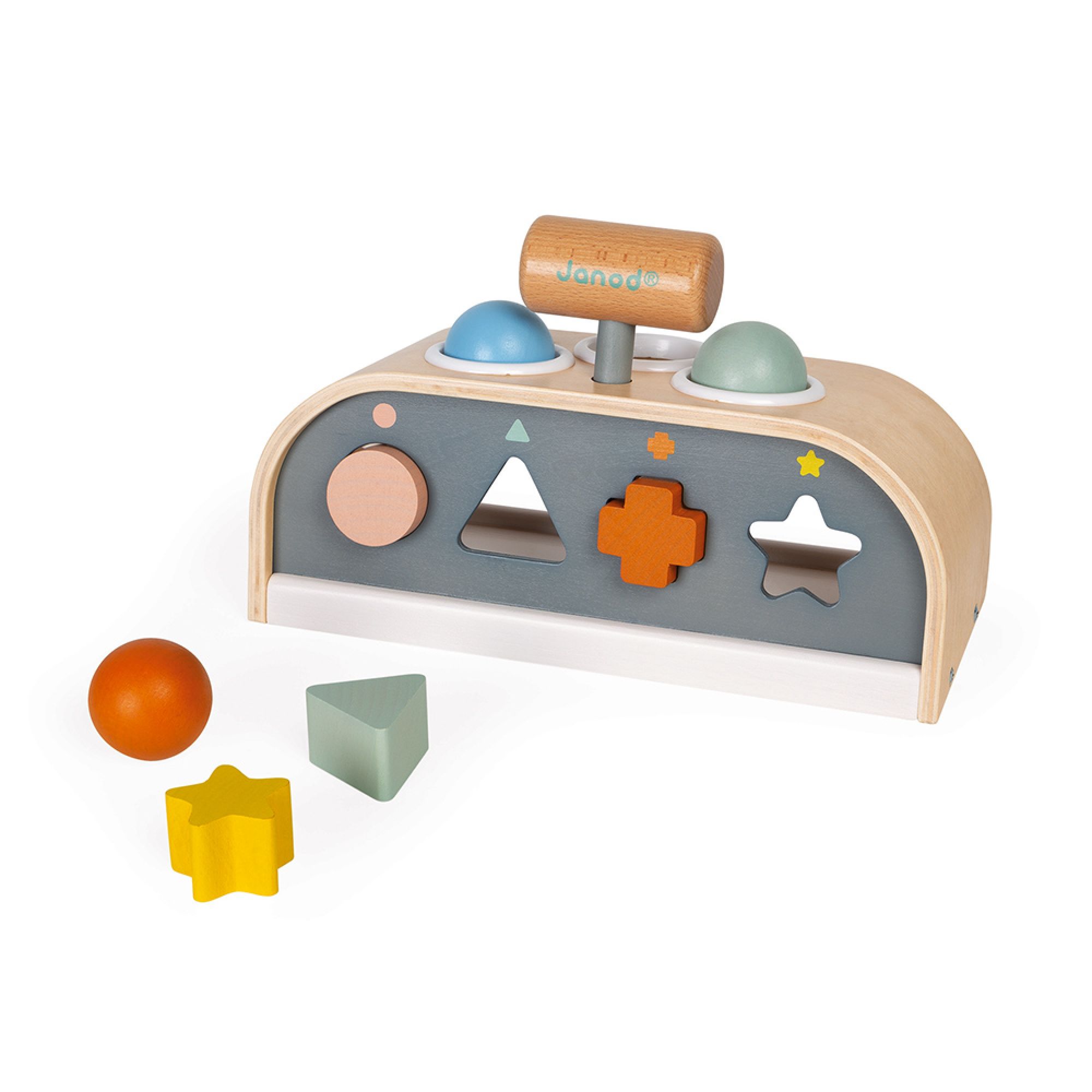 Découvrez la boîte à formes Tap Tap de la collection Sweet Cocoon de la marque Janod. Ce jouet d'éveil en bois est idéal pour les enfants dès 12 mois pour développer l'éveil et la motricité fine des plus petits. Votre enfant va adorer taper sur les balles pour les faire tomber dans la boîte à formes.