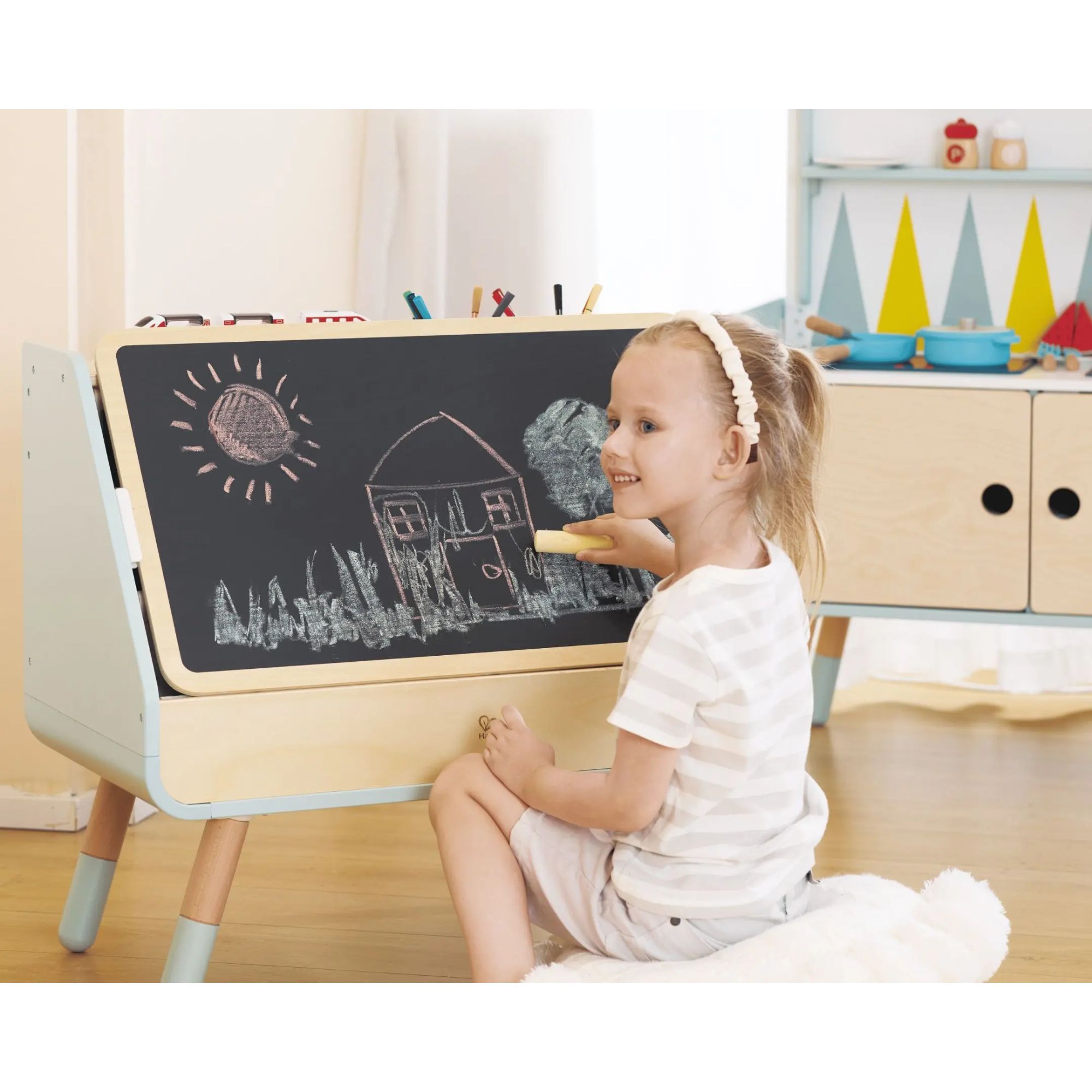 Découvrez la bibliothèque enfant et tableau créatif 2-en-1 Hape qui est le meuble idéal pour aménager un coin lecture et créativité dans la chambre ou la salle de jeux. Avec ses étagères frontales inclinées, les livres préférés de votre enfant sont toujours à portée de main. De l’autre côté, place à la créativité : le tableau double face comprend une surface blanche magnétique pour les feutres et une face noire ardoise pour la craie. Ce meuble compact et polyvalent favorise à la fois l’autonomie, l’organisation et l’éveil artistique des enfants. Fabriqué en bois et panneaux de particules, il combine solidité, praticité et design contemporain, parfait pour les chambres modernes.