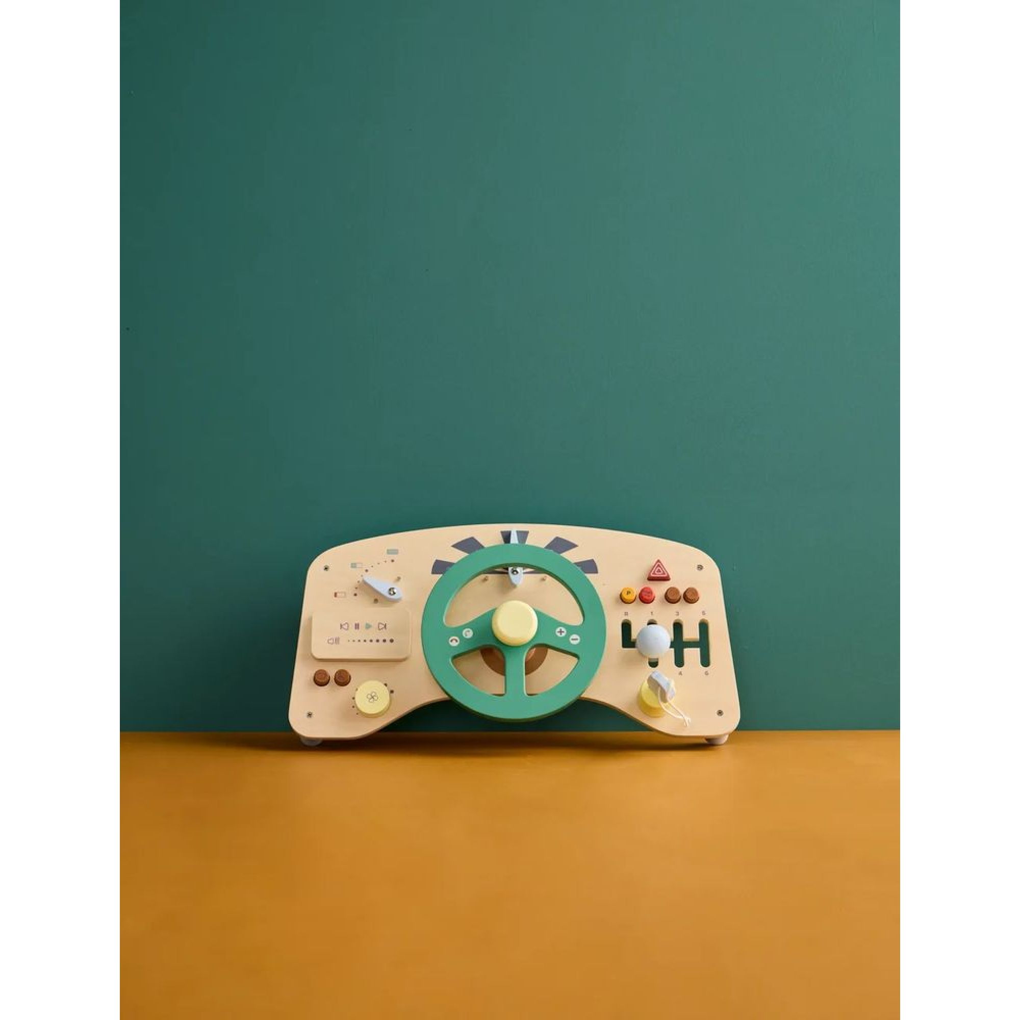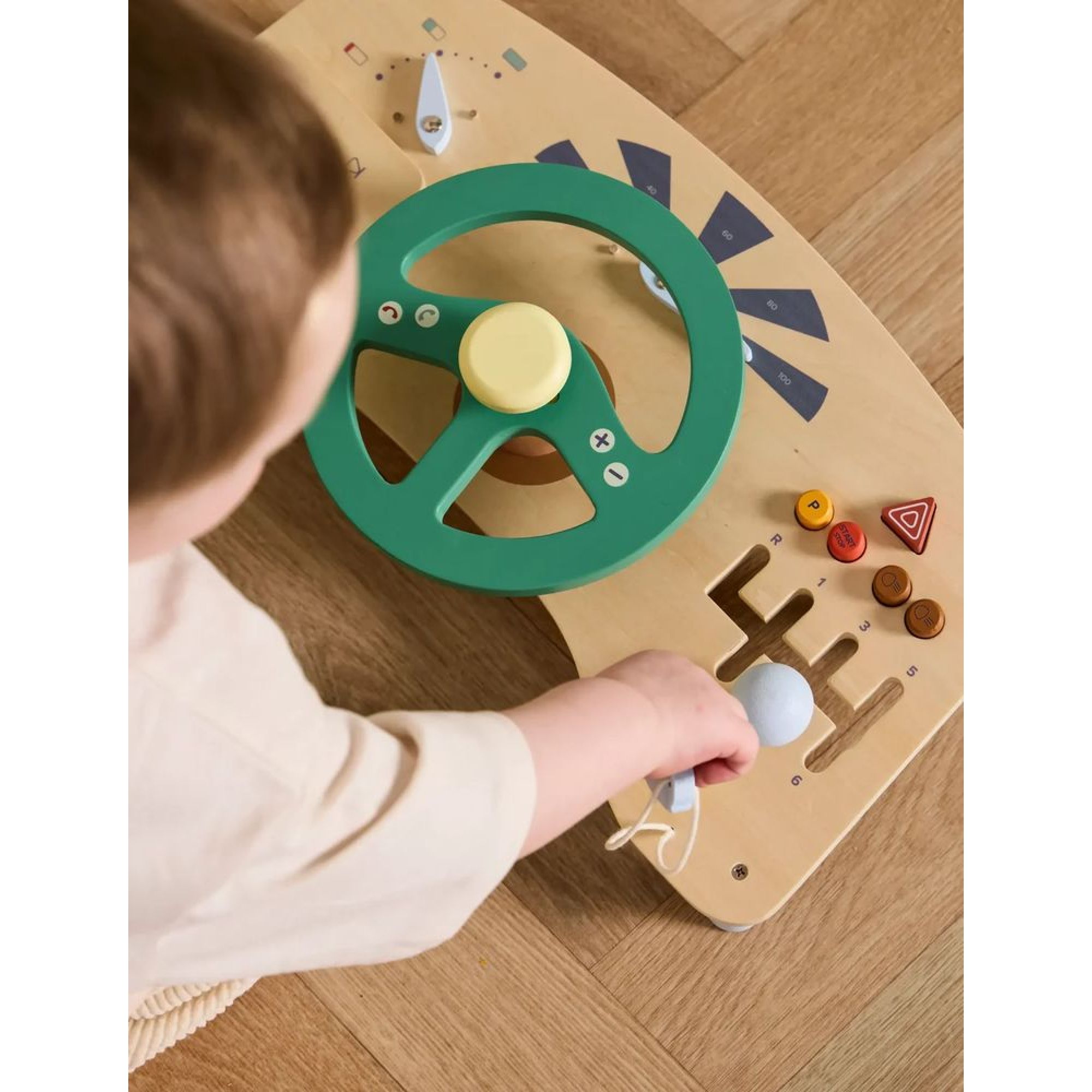 Optez pour le panneau d'activités Tableau de bord voiture de la marque Kid's concept .Ce tableau d'activités de conduite en bois permet à votre enfant de prendre le volant et d'explorer le plaisir de conduire sa propre « voiture ». Avec un volant à tourner, un « GPS » pour suivre les directions et une clé pour démarrer le moteur, les petits conducteurs vont vivre une aventure passionnante. Le tableau comporte également un klaxon sur le volant, des boutons-poussoirs, un compteur de vitesse et un indicateur de niveau de batterie, créant ainsi une expérience de conduite immersive. Et comme il s'agit d'une voiture électrique, il n'y a pas besoin d'essence - juste de quoi s'amuser ! Parfait pour les tout-petits qui explorent le fonctionnement des choses, ce tableau encourage l'interaction avec les boutons, les molettes et d'autres éléments, ce qui contribue à développer la coordination et la concentration des enfants lorsqu'ils font semblant de diriger et de conduire.