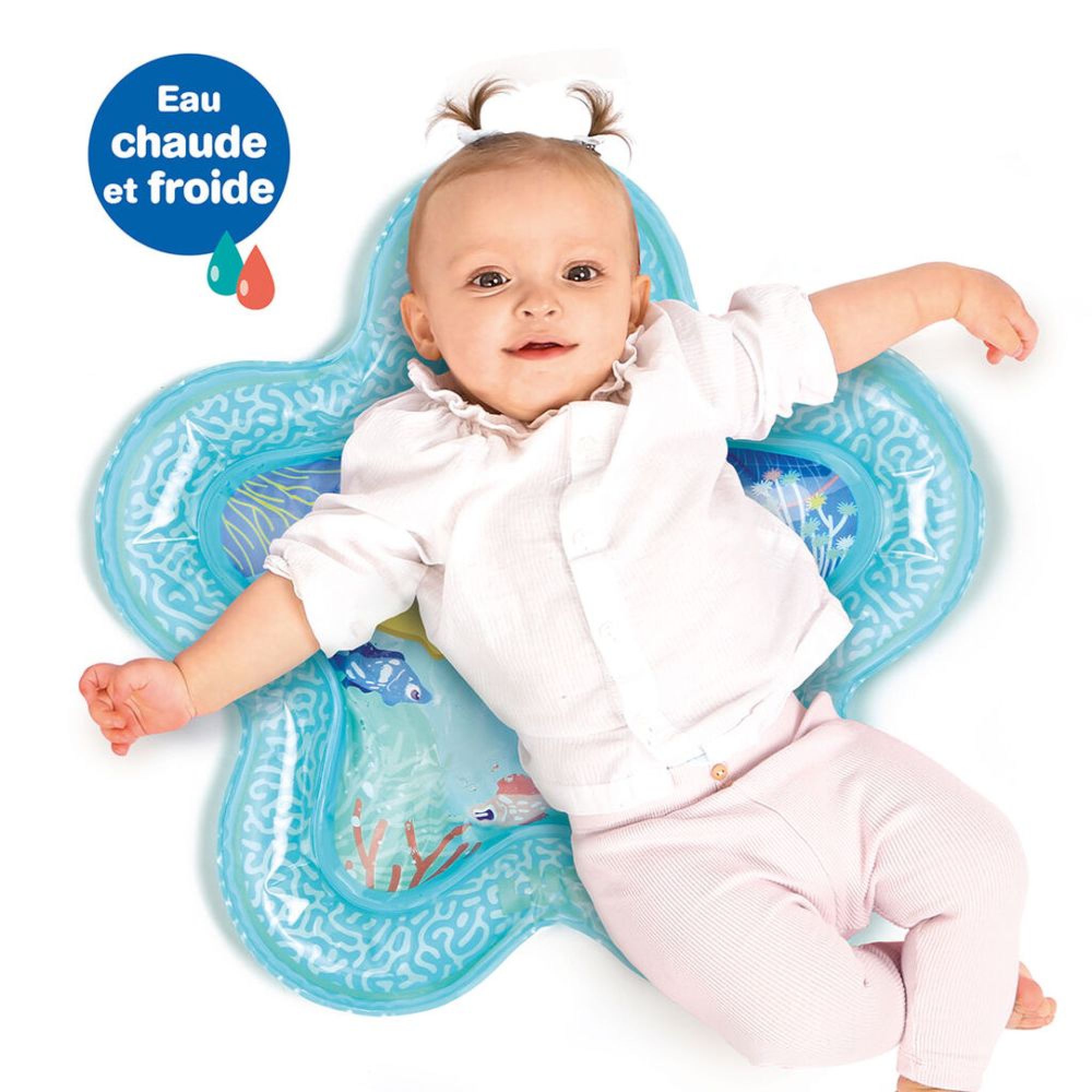 Dans ce tapis d'eau en forme d'étoile, votre enfant pourra manipuler 3 jouets flottants en forme de coquillages. Vous pourrez remplir le tapis avec de l'eau chaude ou de l'eau froide. Il est recommandé de vider l'eau du tapis après chaque utilisation.