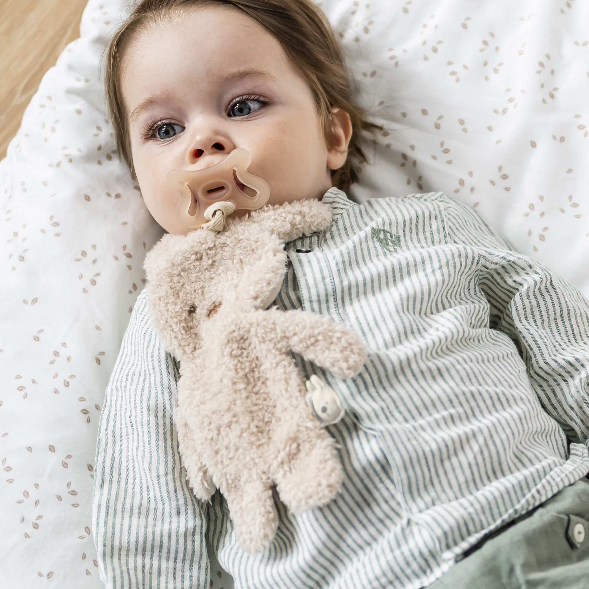 Ce doudou est très complet puisqu'il permet de consoler, de couvrir et d'attacher la sucette de bébé.