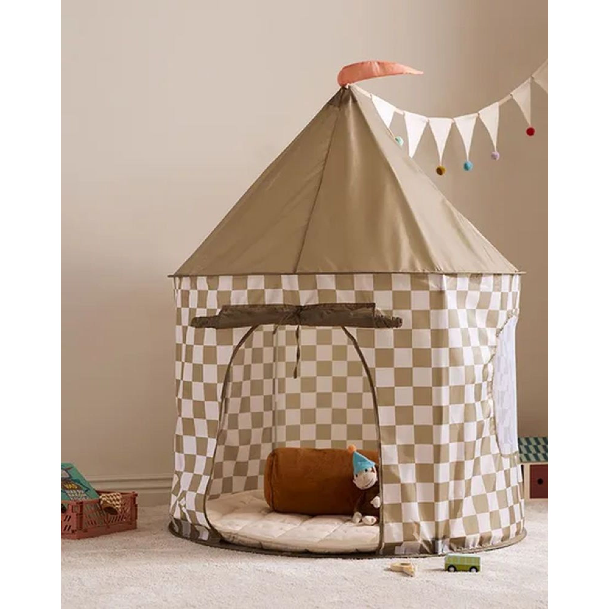 Craquez pour cette tente de jeu Kaki à carreaux de la marque Kid's Concept. Créer un atmosphère cosy à votre enfant en installant cette tente soit à l'intérieur, dans sa chambre ou dans son salon, ou encore à l'extérieur lors des beaux jours. Il appréciera de recevoir ses amis dans ce coin chaleureux. Votre enfant pourra y passer du temps précieux à s'amuser ou à se détendre. Ajouter du confort avec un tapis de la marque Kid's concept .