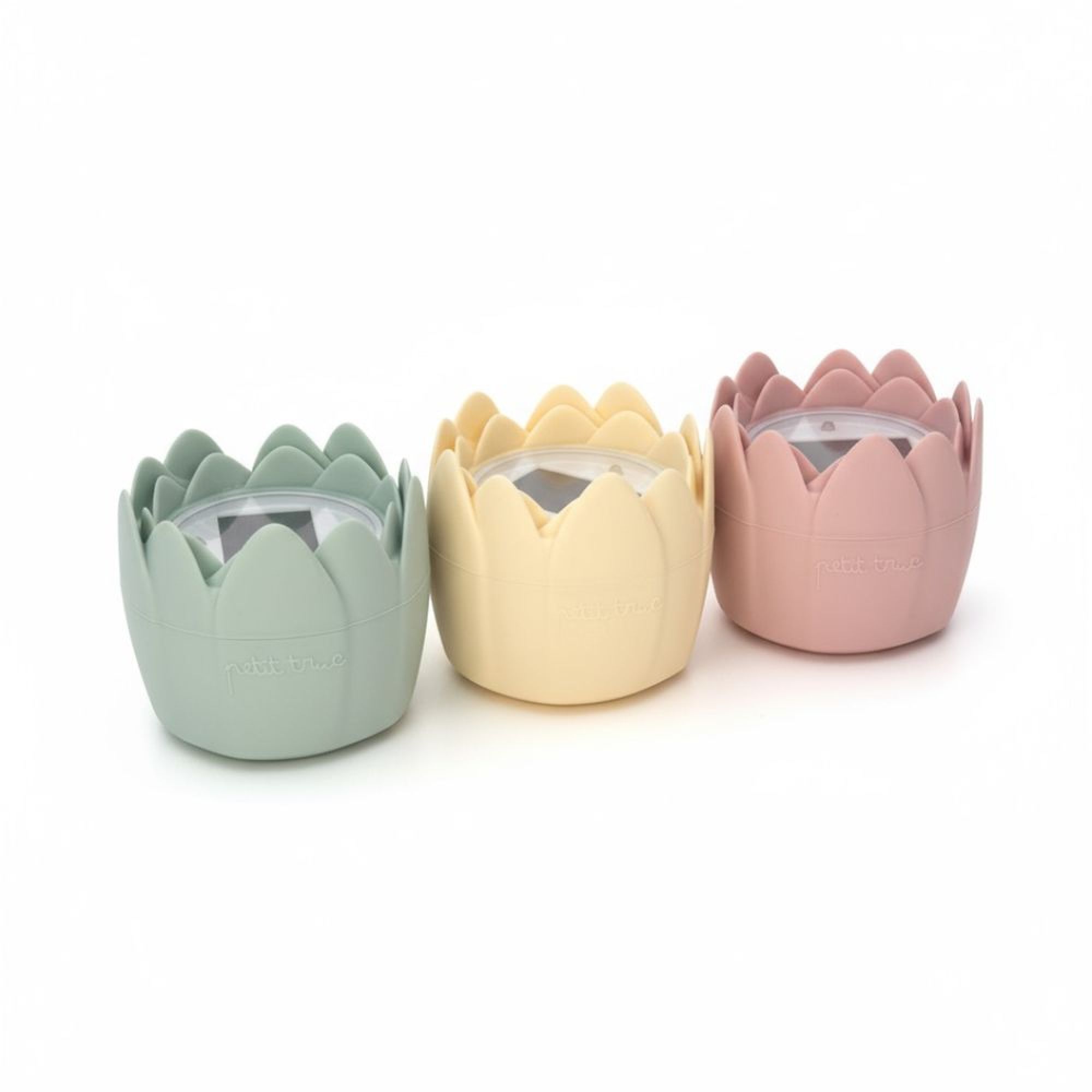 Découvrez le thermomètre numérique , moèle nénuphar Vanille de la marque Petit Truc . Pour profiter d'un moment sûr et agréable , il mesure avec précision la température de l’eau du bain de bébé . Grâce à son écran LCD et dôté d’une alerte visuelle bleue ou rouge, vous verrez d’un coup d’œil si l’eau est trop froide ou trop chaude. Sa coque en silicone souple, sans BPA, est résistante, étanche et agréable au toucher.