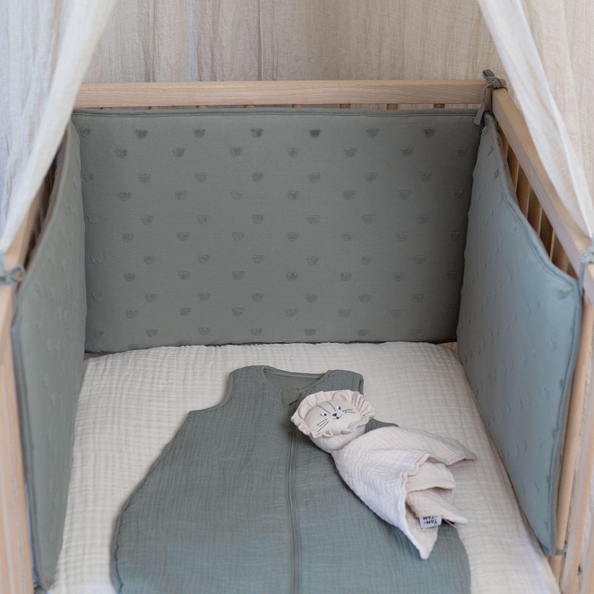 Ce tour de lit Trois Kilos Sept a été spécialement conçu pour s'adapter aux lits bébé de 60 x 120 cm et ceux de 70 x 140 cm. Ce tour de lit 3 panneaux évitera à votre enfant de se cogner la tête contre les barreaux du lit. Cela lui garantira d'agréables nuits !