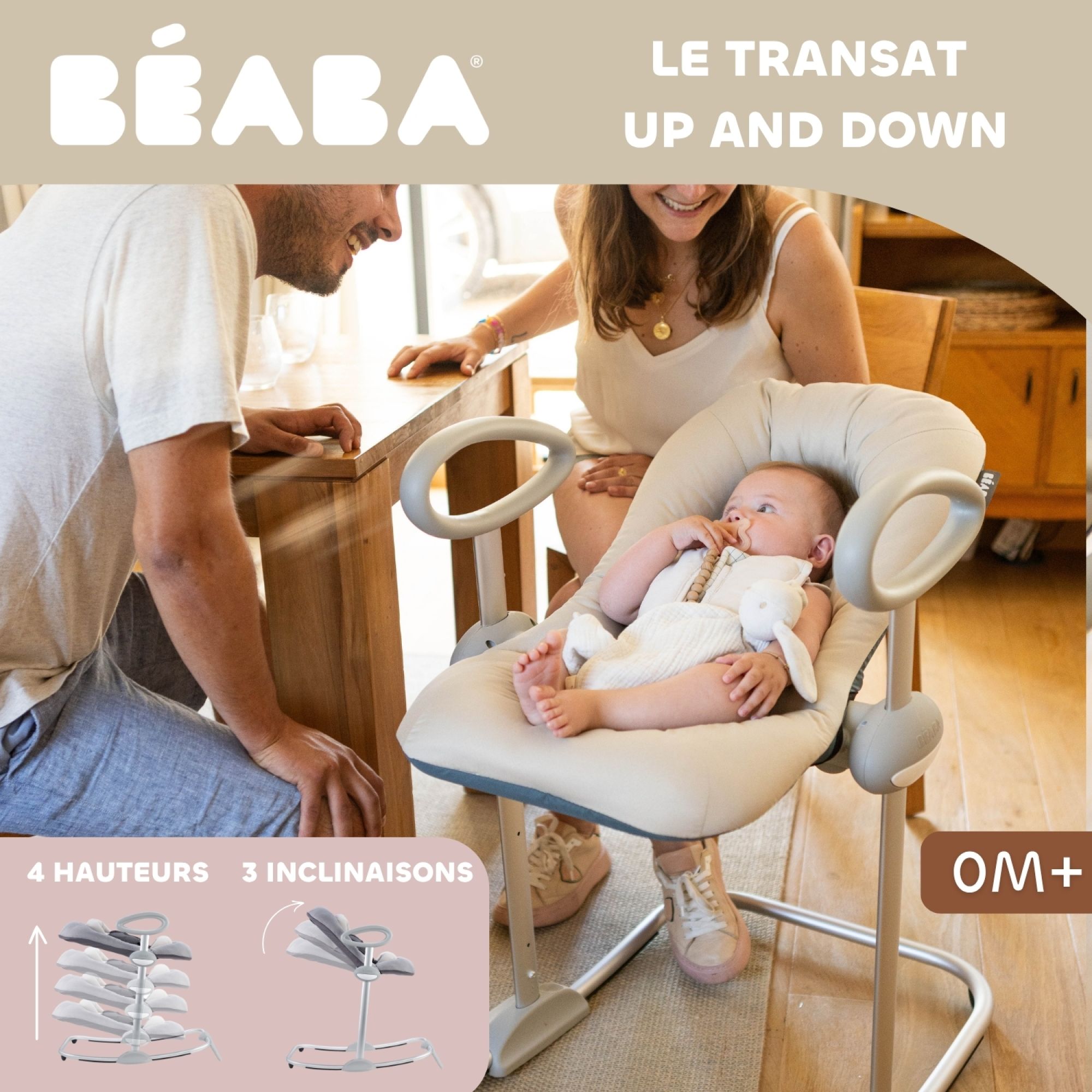 Offrez confort et sécurité à votre enfant avec le transat bébé Up & Down V4 Argile de la marque Béaba. Doté d’une assise rembourrée et ergonomique, il soutient parfaitement bébé dès la naissance. Son système innovant permet de régler la hauteur sur plusieurs niveaux pour adapter le transat aux différentes situations du quotidien. L’inclinaison de l’assise est ajustable pour suivre l’évolution des besoins de bébé, qu’il soit éveillé, au repos ou endormi. Élégant et pratique, ce transat devient un allié incontournable pour les parents.