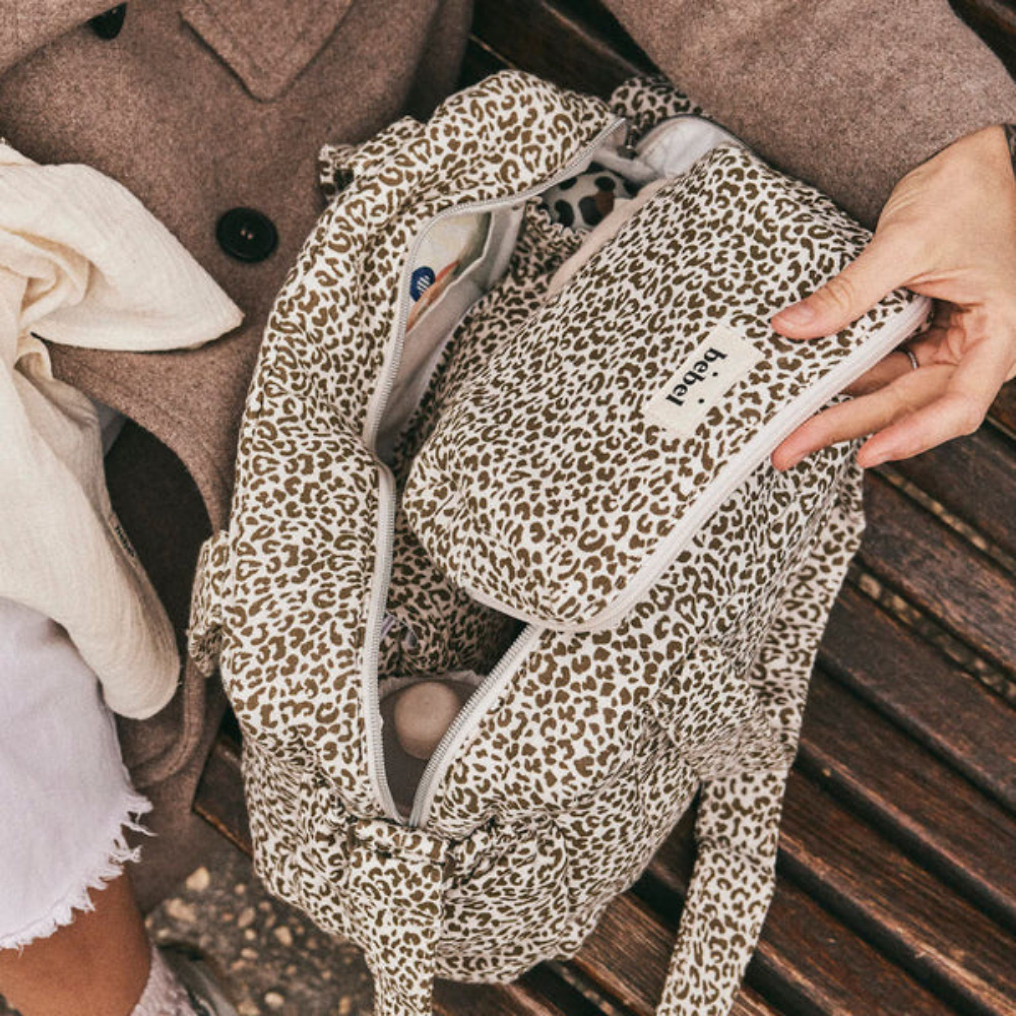 Craquez pour cette mini trousse de toilette de la collection Léopard Beige de la marque Bebel. Cette trousse de toilette léopard est à la fois légère et pratique. Grâce à sa grande ouverture zippée et son intérieur imperméable, elle est idéale pour organiser toutes les affaires dans votre sac à langer.