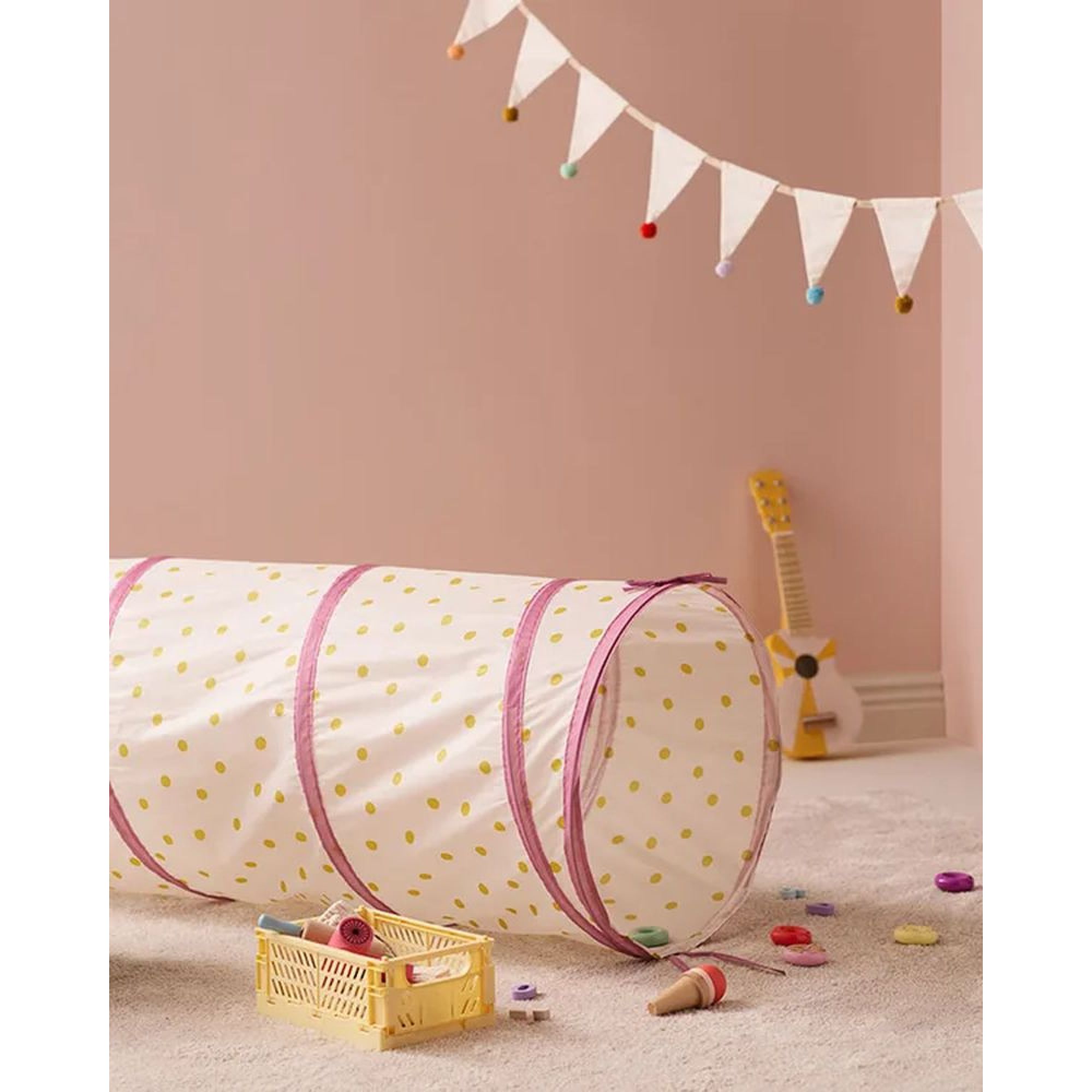 Optez pour ce tunnel de jeu à pois rose de la marque Kid's Concept. Votre enfant va adorer ce tunnel où il va pouvoir s'y faufiler dedans, se cacher et bien sûr s'amuser tout seul ou avec ses amis. Le tunnel de jeu se plie facilement en un cercle de manière à offrir un rangement pratique et peu encombrant.